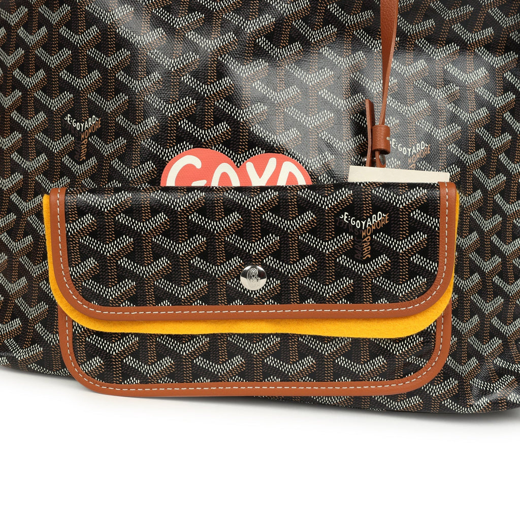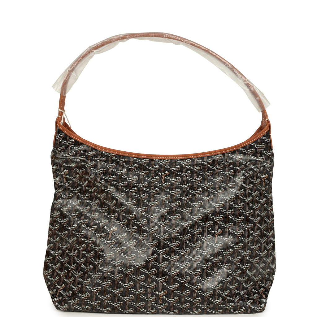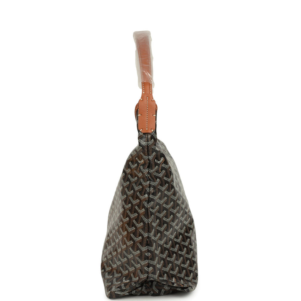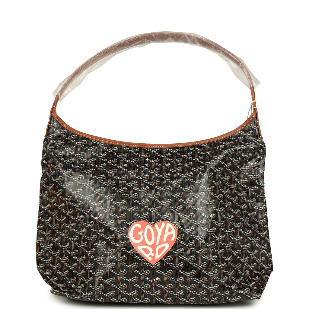 Goyard Goyardine Canvas Black and Brown Hand-Painted Heart Boheme Hobo PM Palladium Hardware