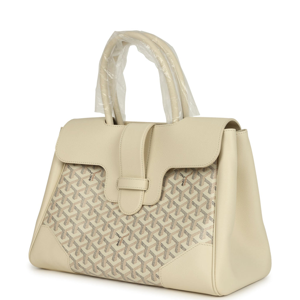 Goyard Goyardine Canvas Sand Saigon Tote Palladium Hardware