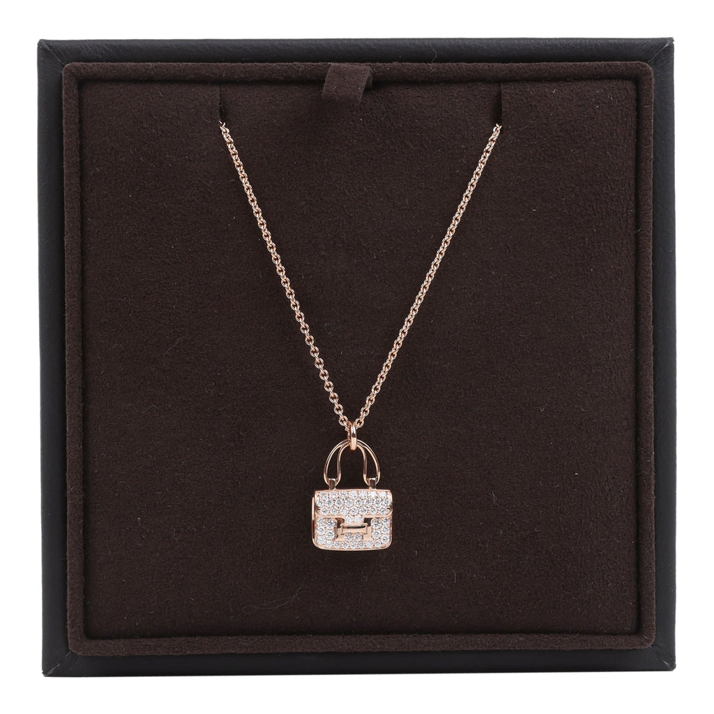 Hermes Amulettes Constance Pendant Necklace Diamonds 18K Rose Gold Hardware
