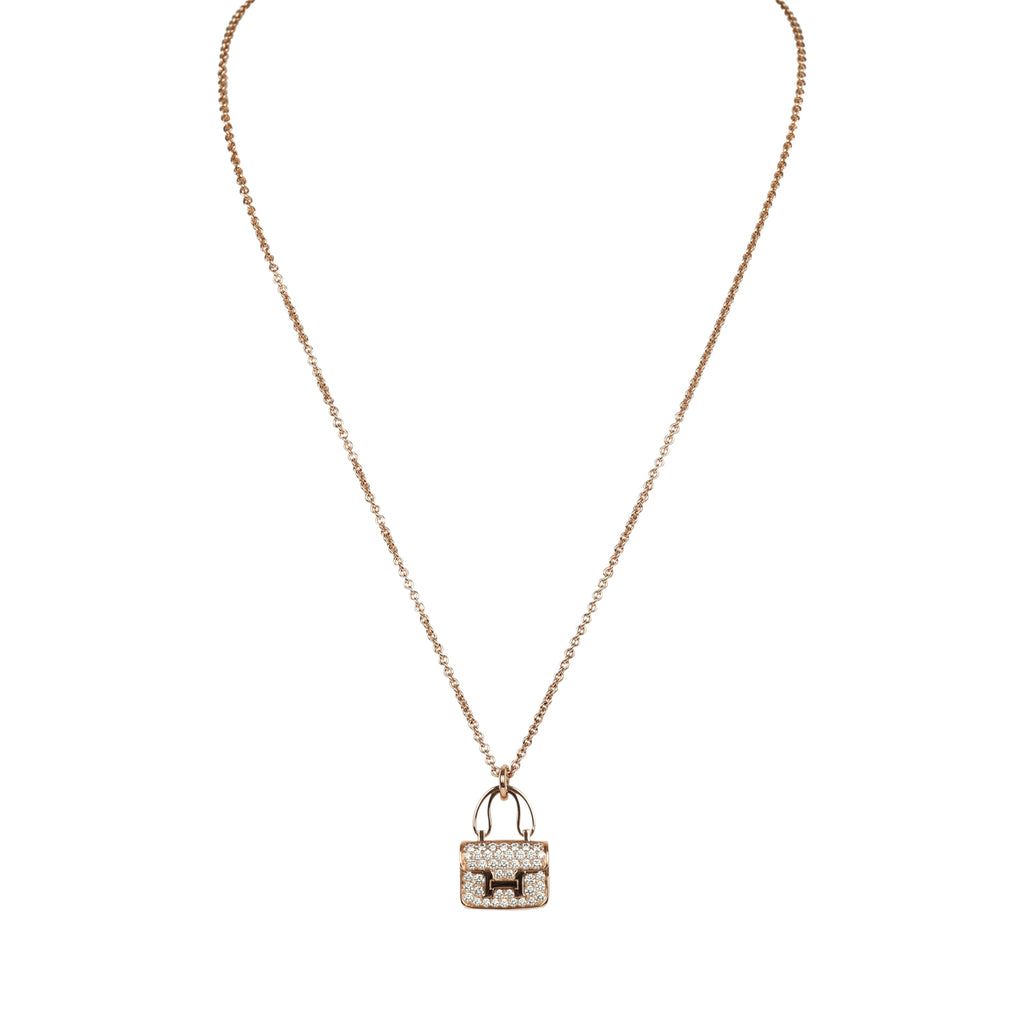 Hermes Amulettes Constance Pendant Necklace Diamonds 18K Rose Gold Hardware