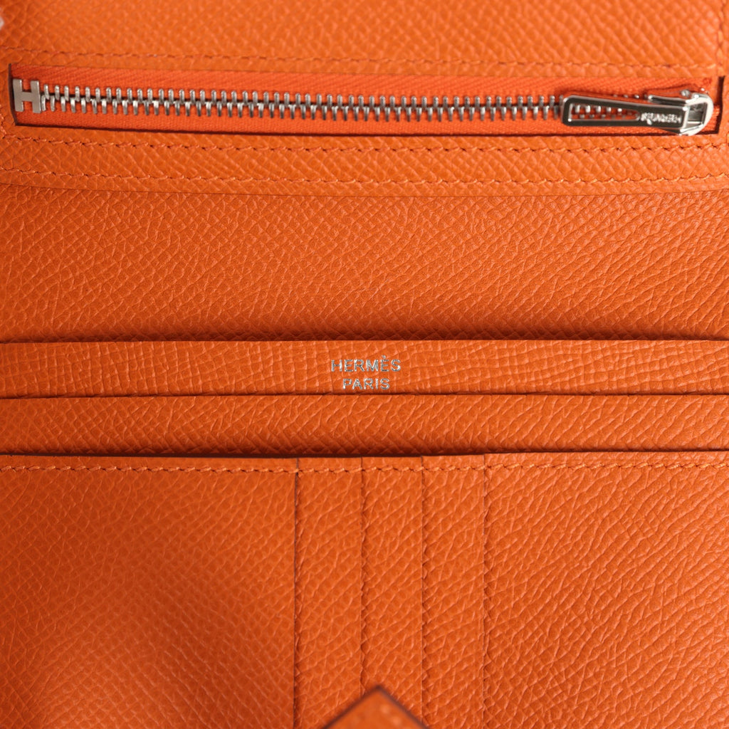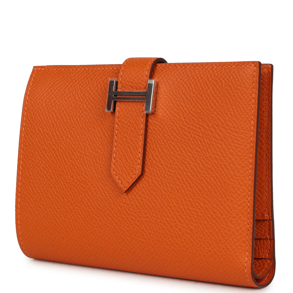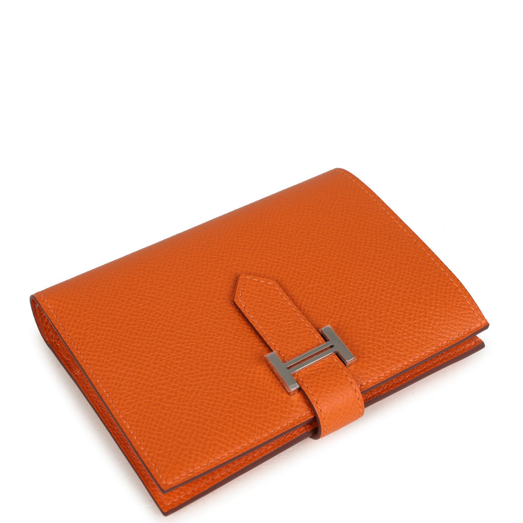 Hermes Bearn Compact Wallet Orange Epsom Palladium Hardware