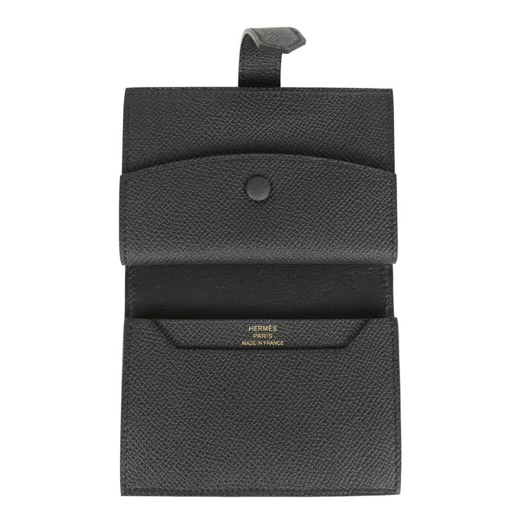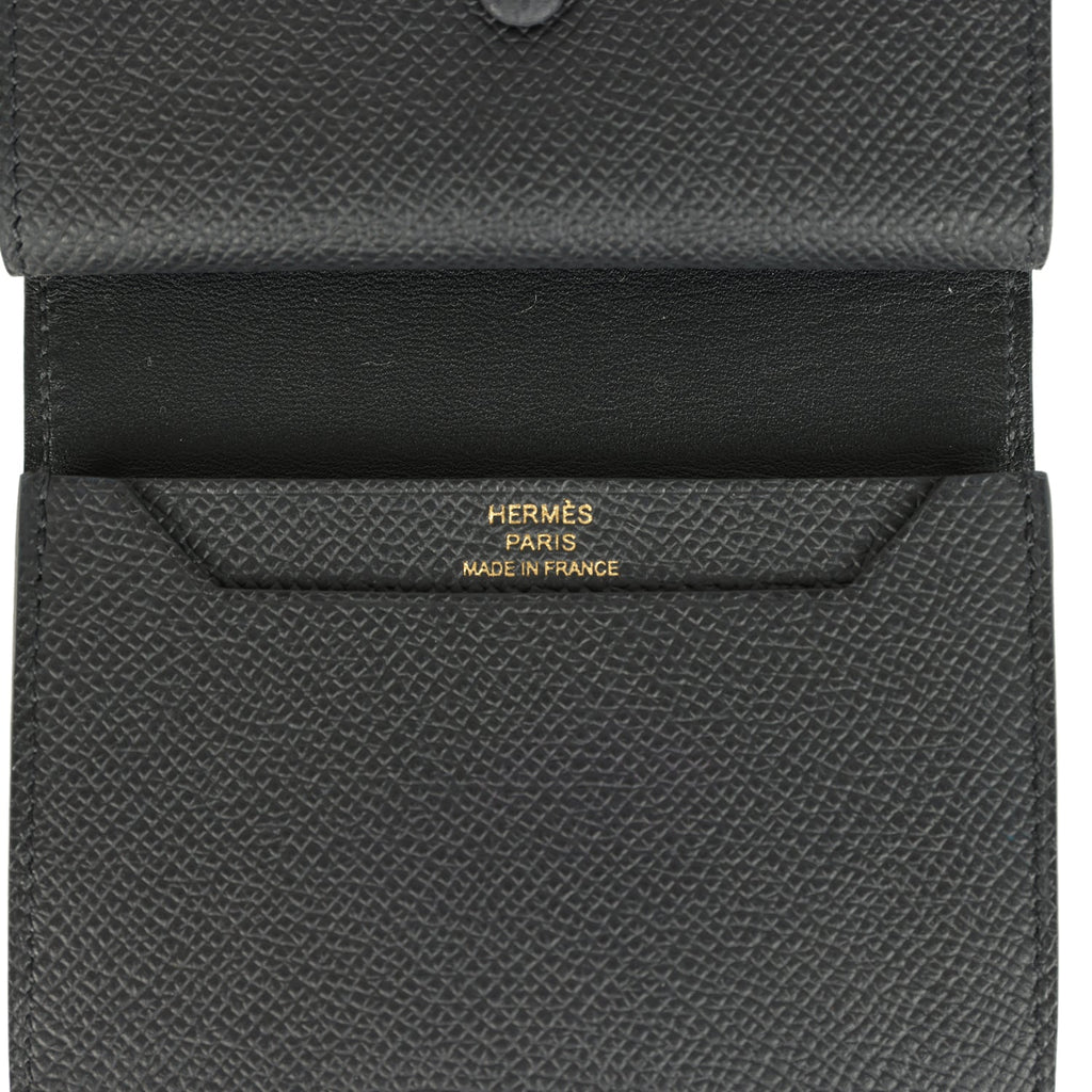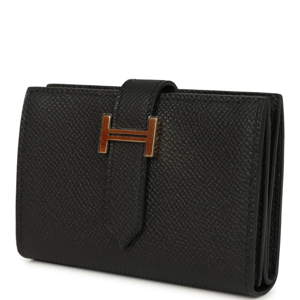 Hermes Bearn Mini Wallet Black Epsom Gold Hardware