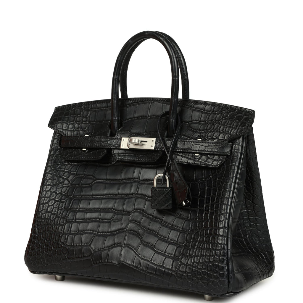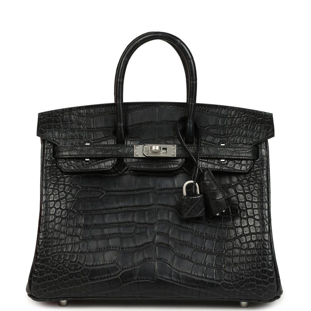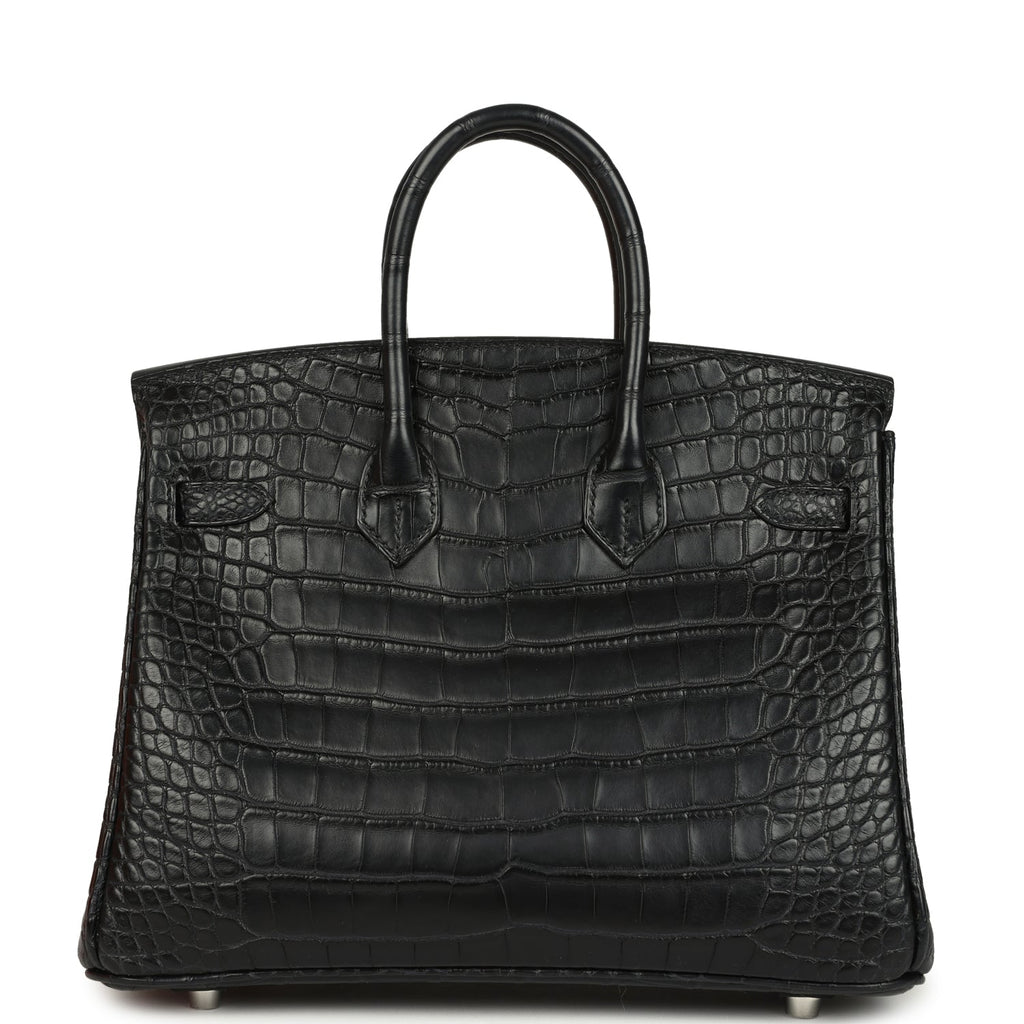 Hermes Birkin 25 Black Matte Alligator Brushed Palladium Hardware