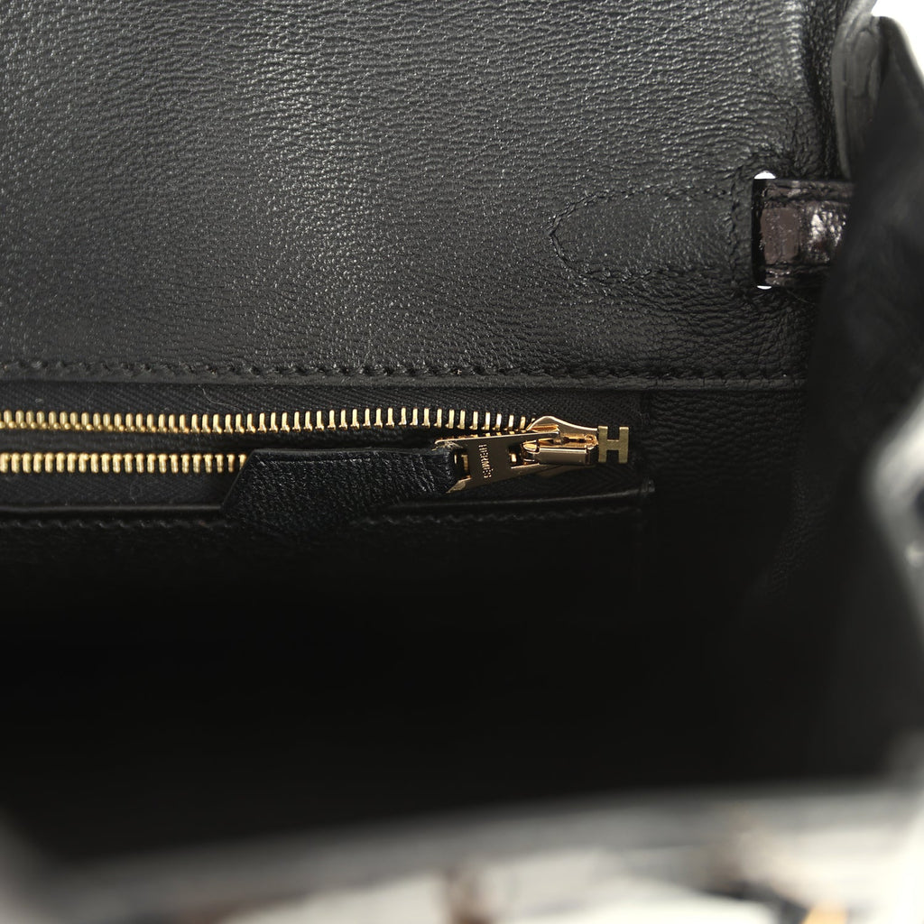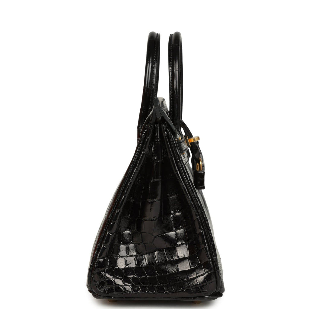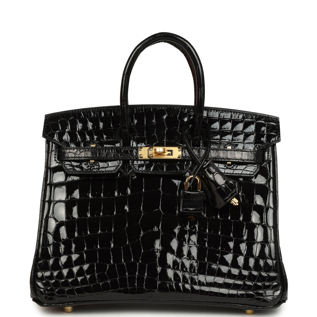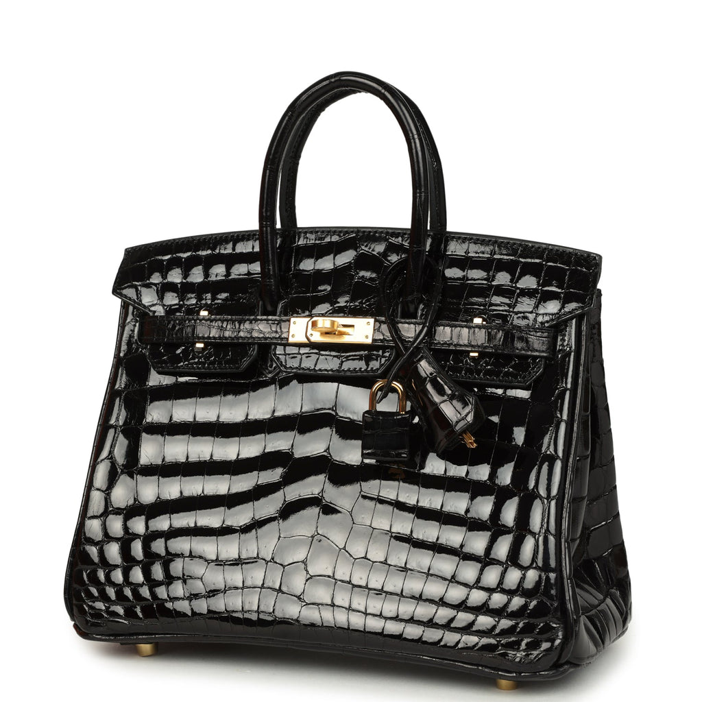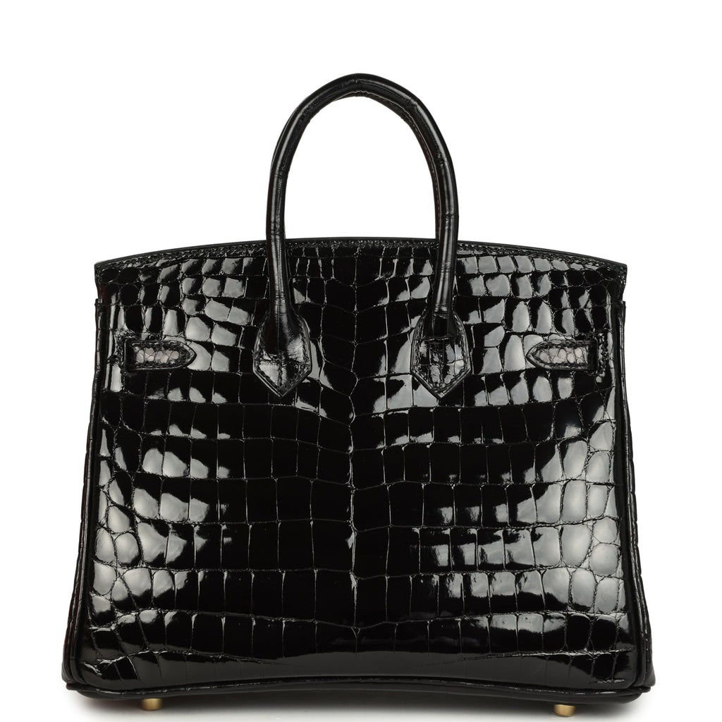 Hermes Birkin 25 Black Shiny Niloticus Crocodile Gold Hardware
