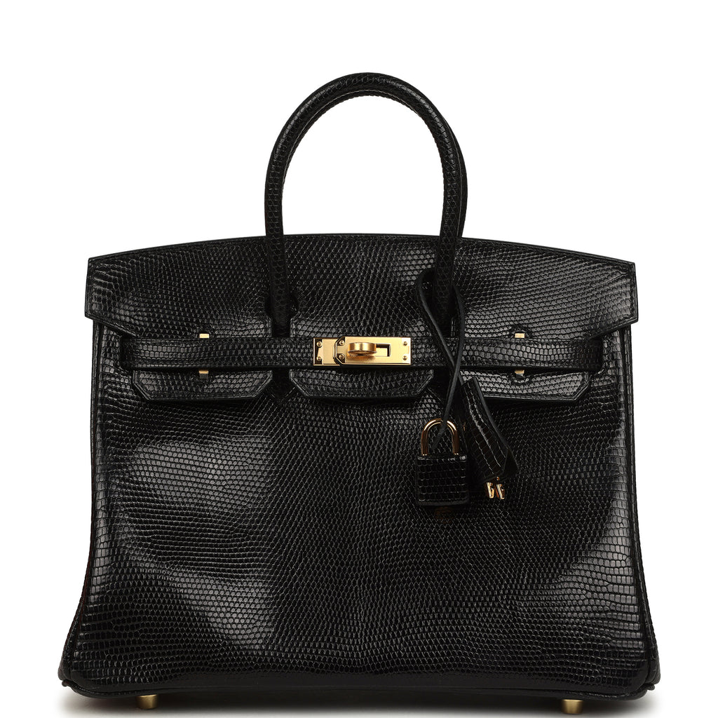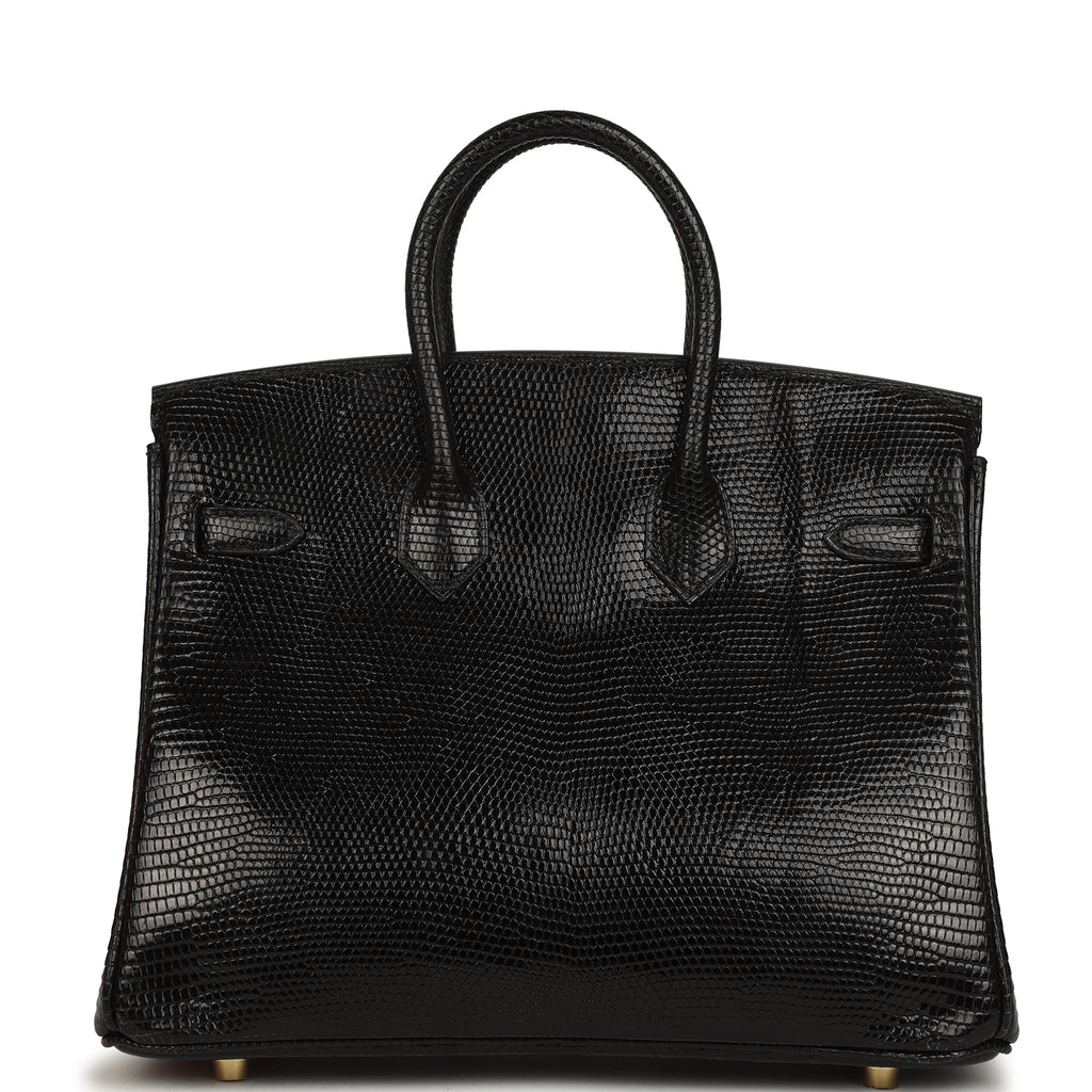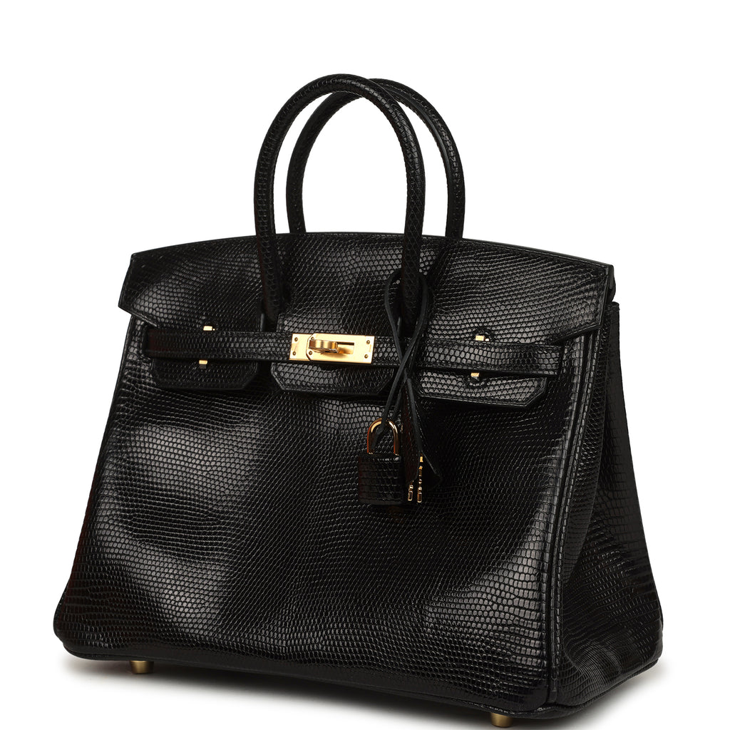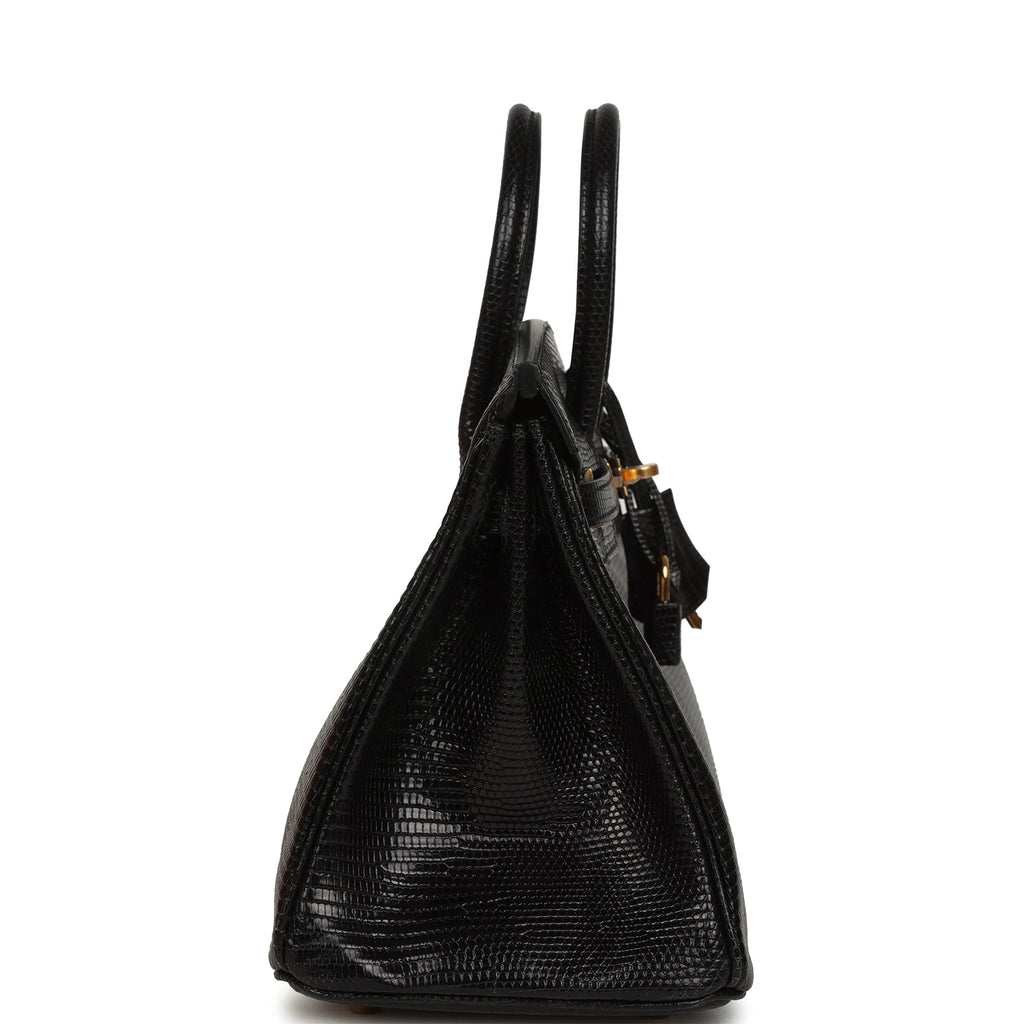 Hermes Birkin 25 Black Shiny Varanus Niloticus Lizard Gold Hardware