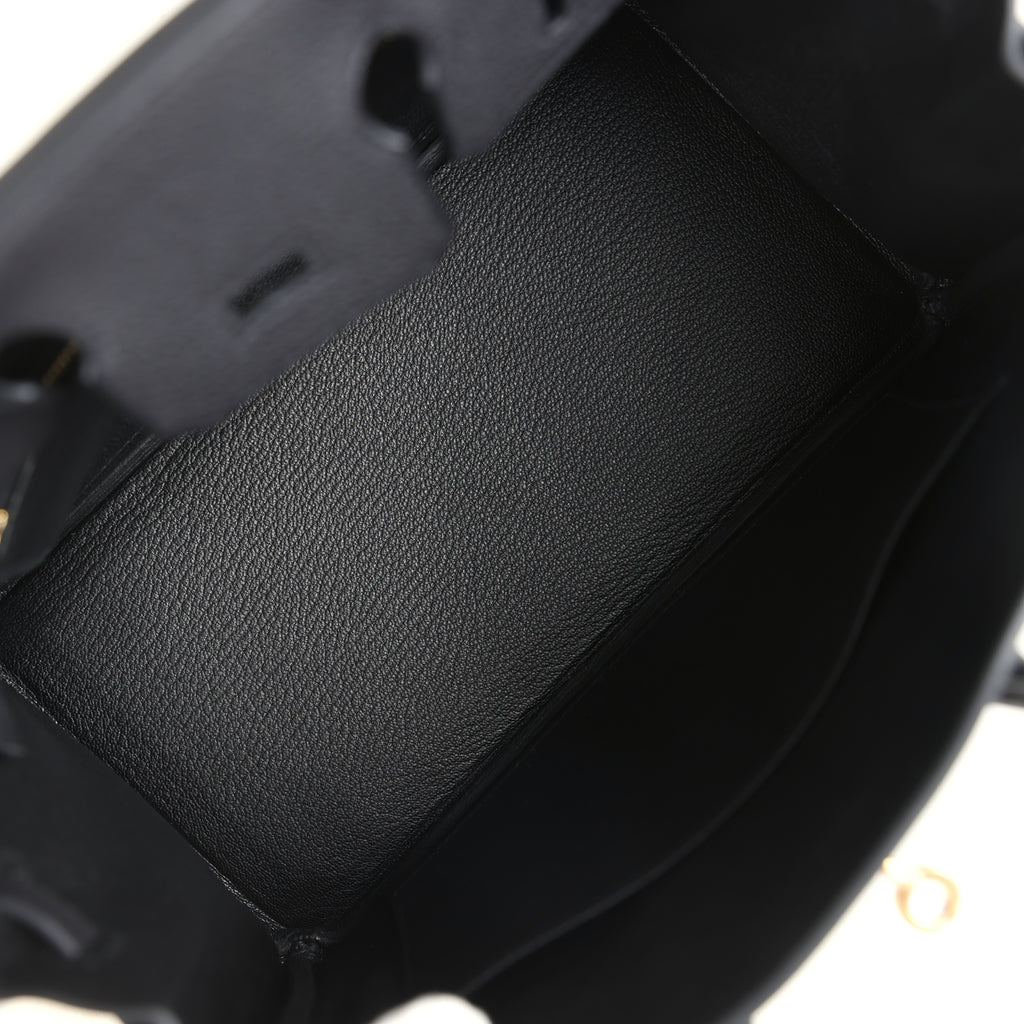 The interior is lined with Black chevre and has a zip pocket with an Hermes engraved zipper pull and an open pocket on the opposite side.