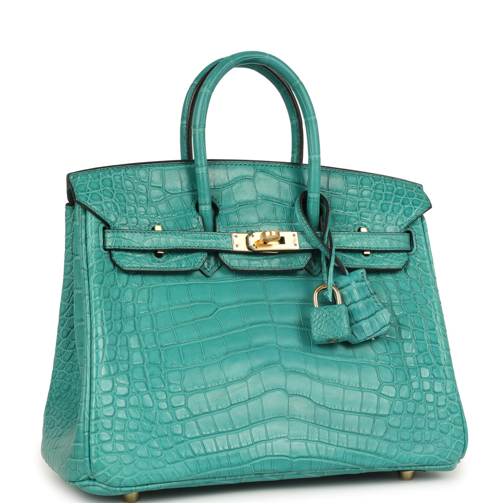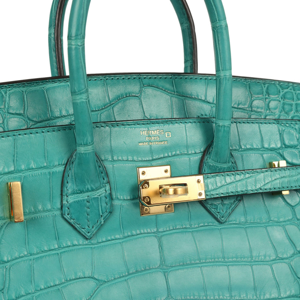 Hermes Birkin 25 Bleu Paon Matte Alligator Gold Hardware