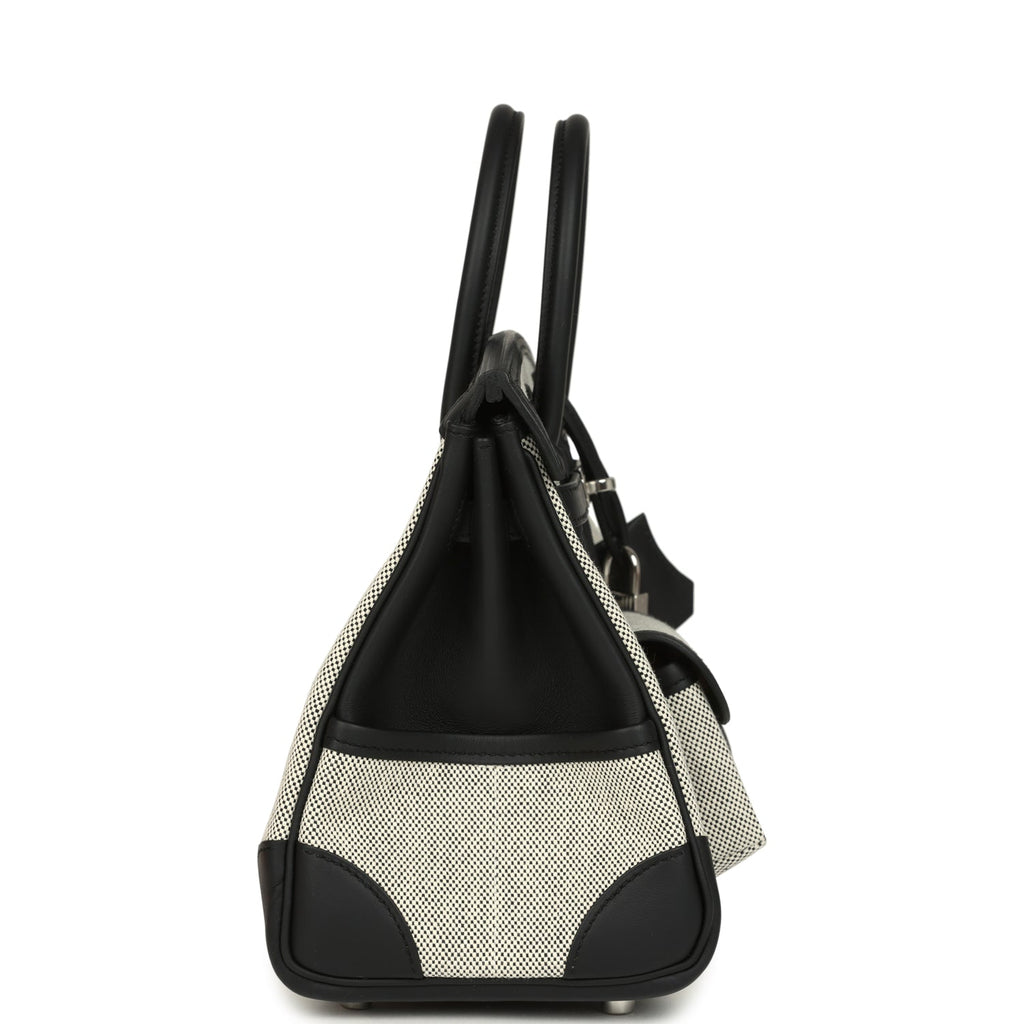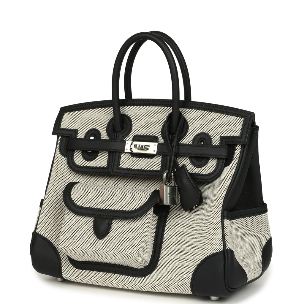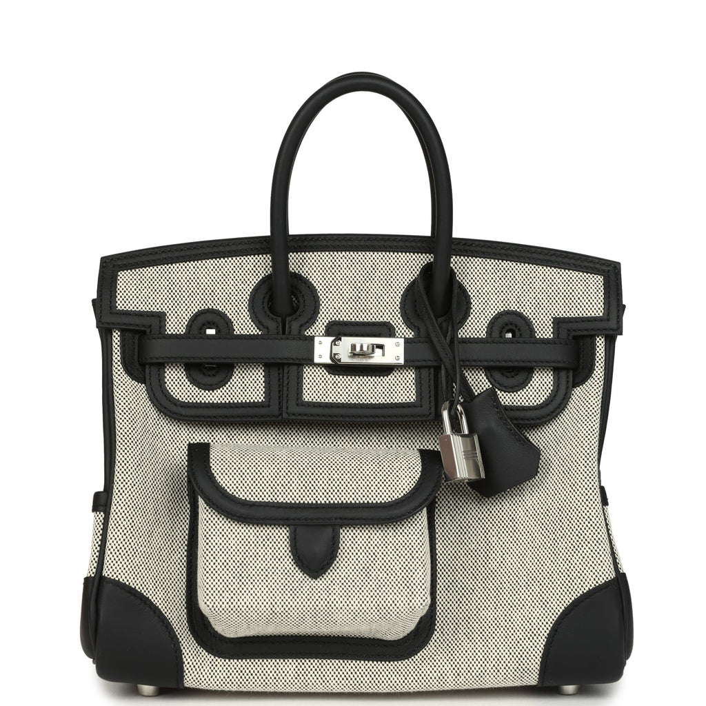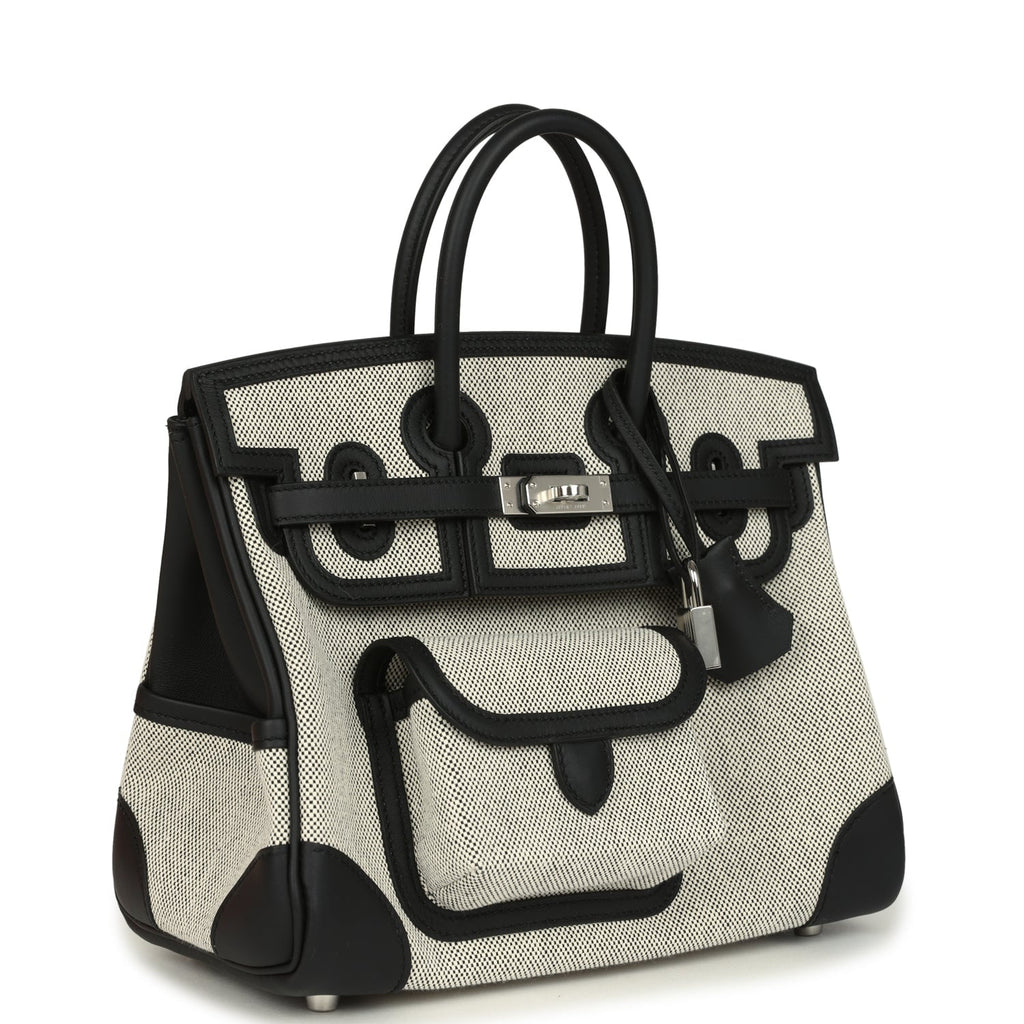 Hermes Birkin 25 Cargo Ecru-Black Toile H Canvas and Black Swift Palladium Hardware