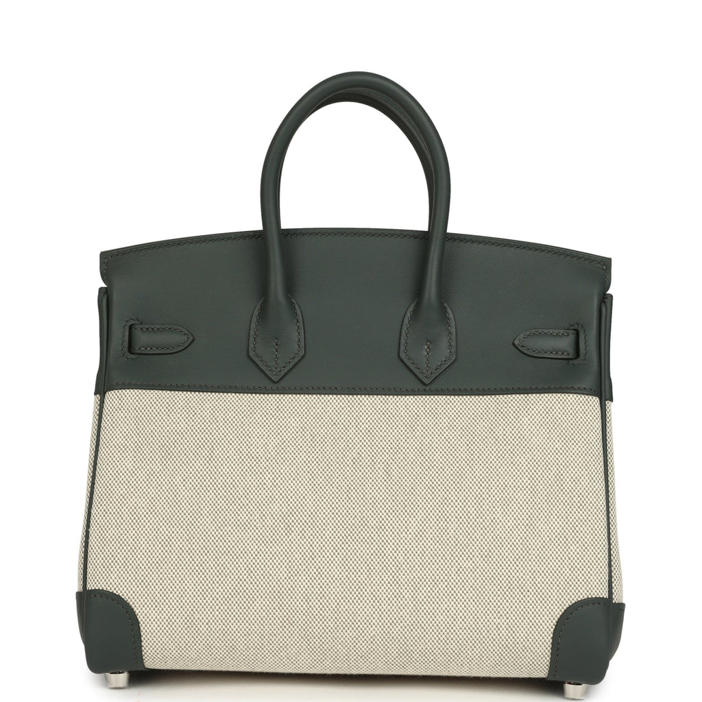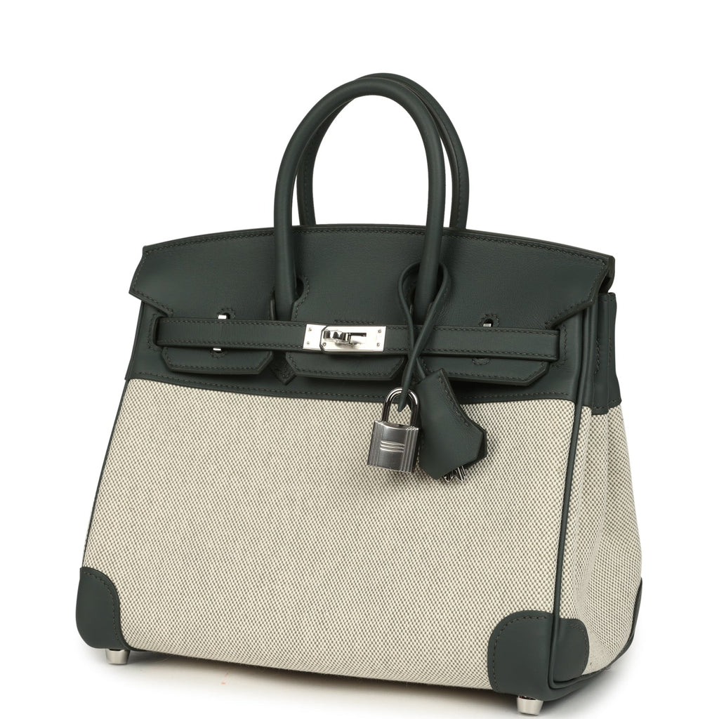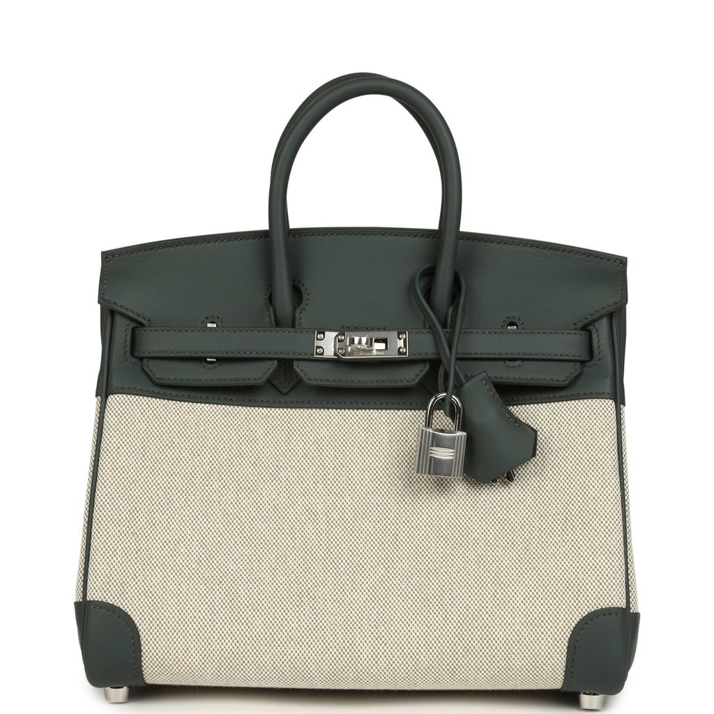 Hermes Birkin 25 Ecru-Vert Amande Toile H Canvas and Vert Mangrove Swift Palladium Hardware
