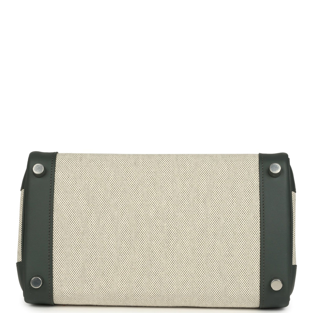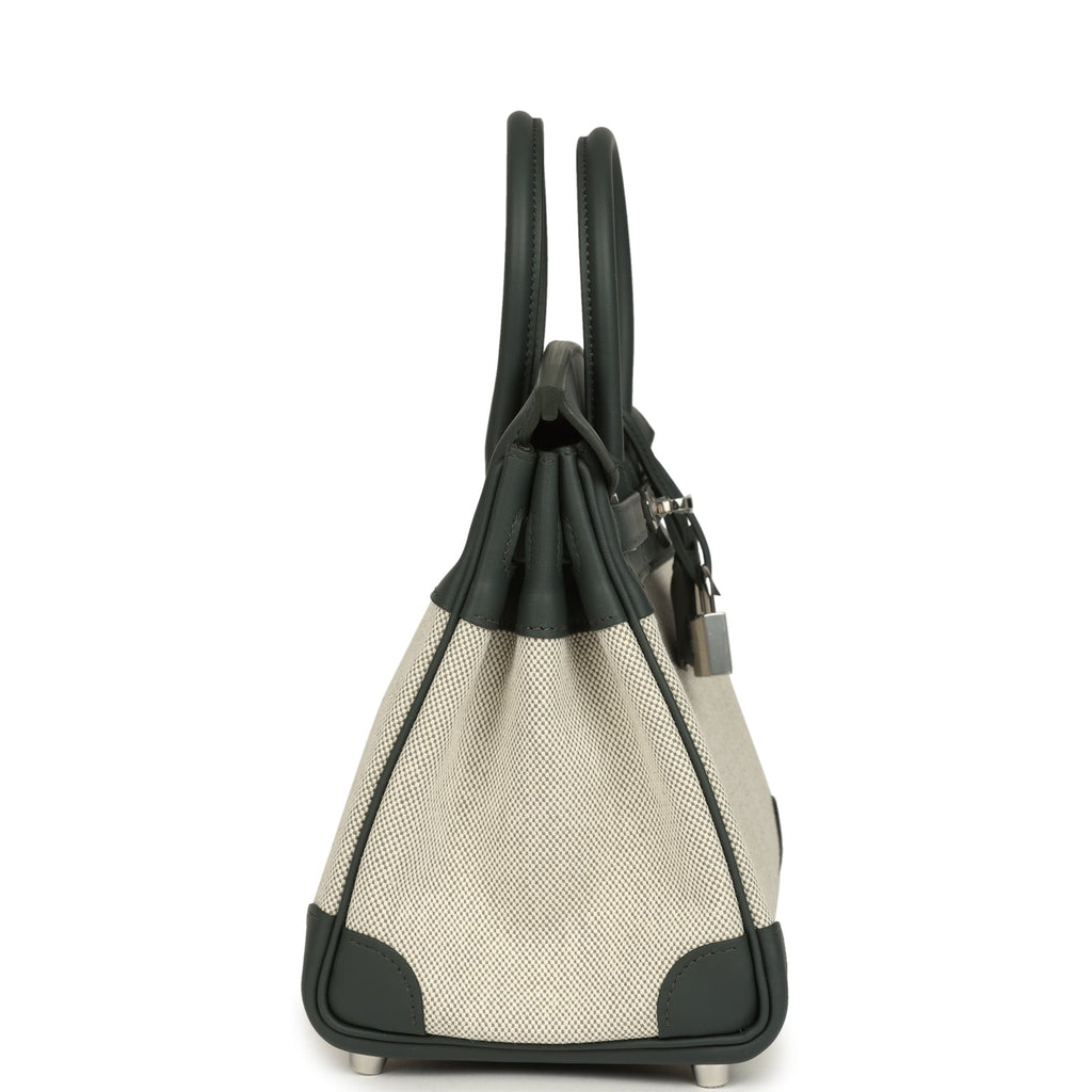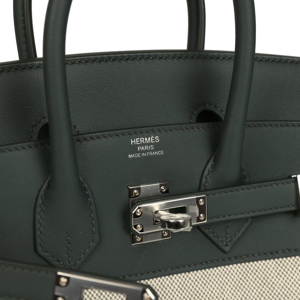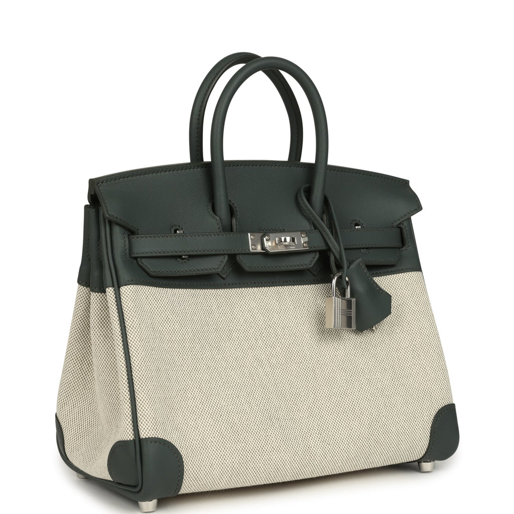 Hermes Birkin 25 Ecru-Vert Amande Toile H Canvas and Vert Mangrove Swift Palladium Hardware