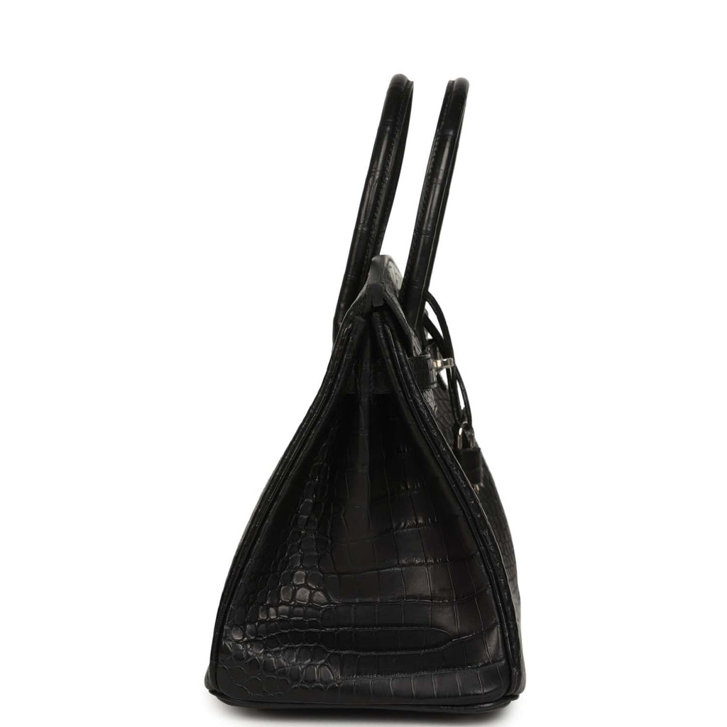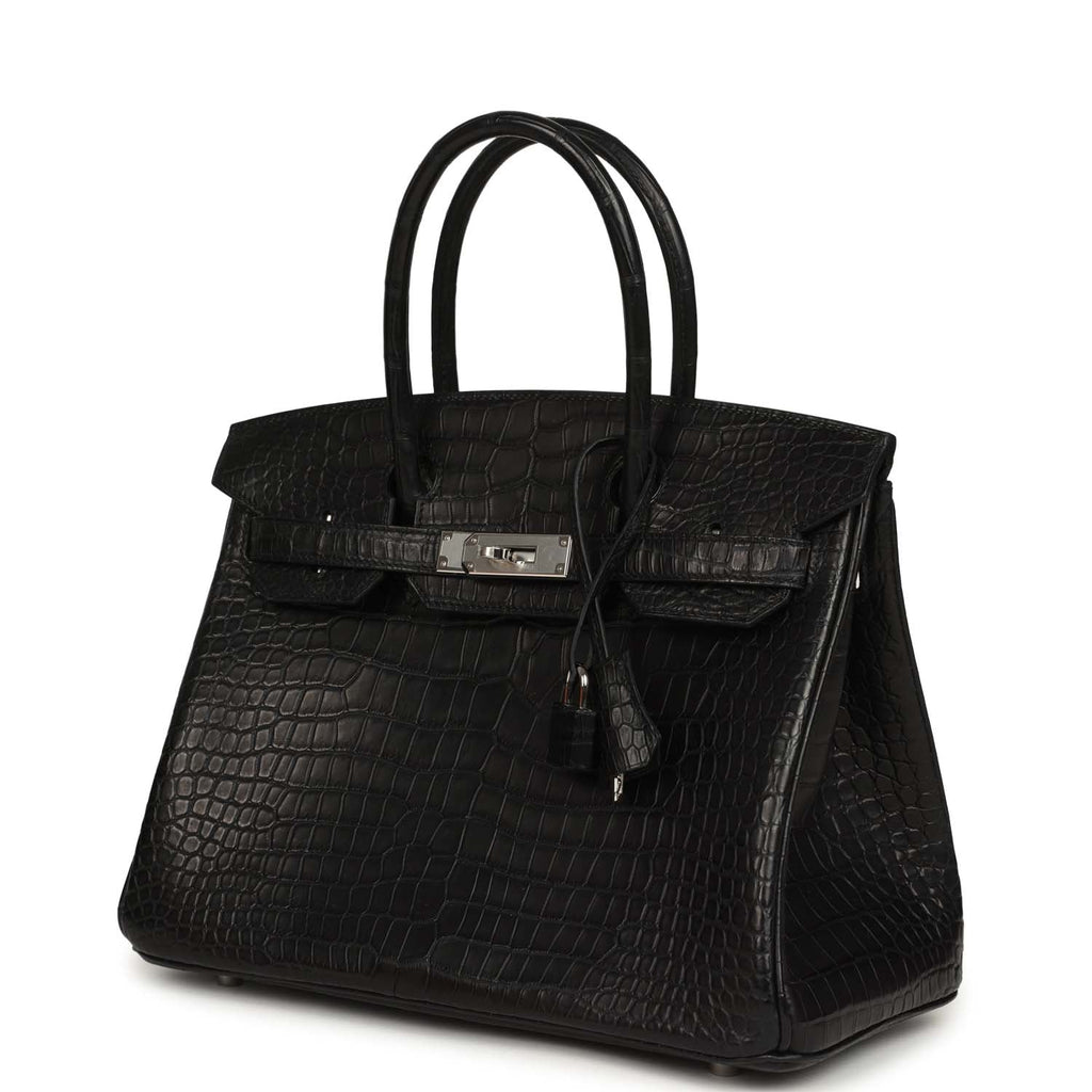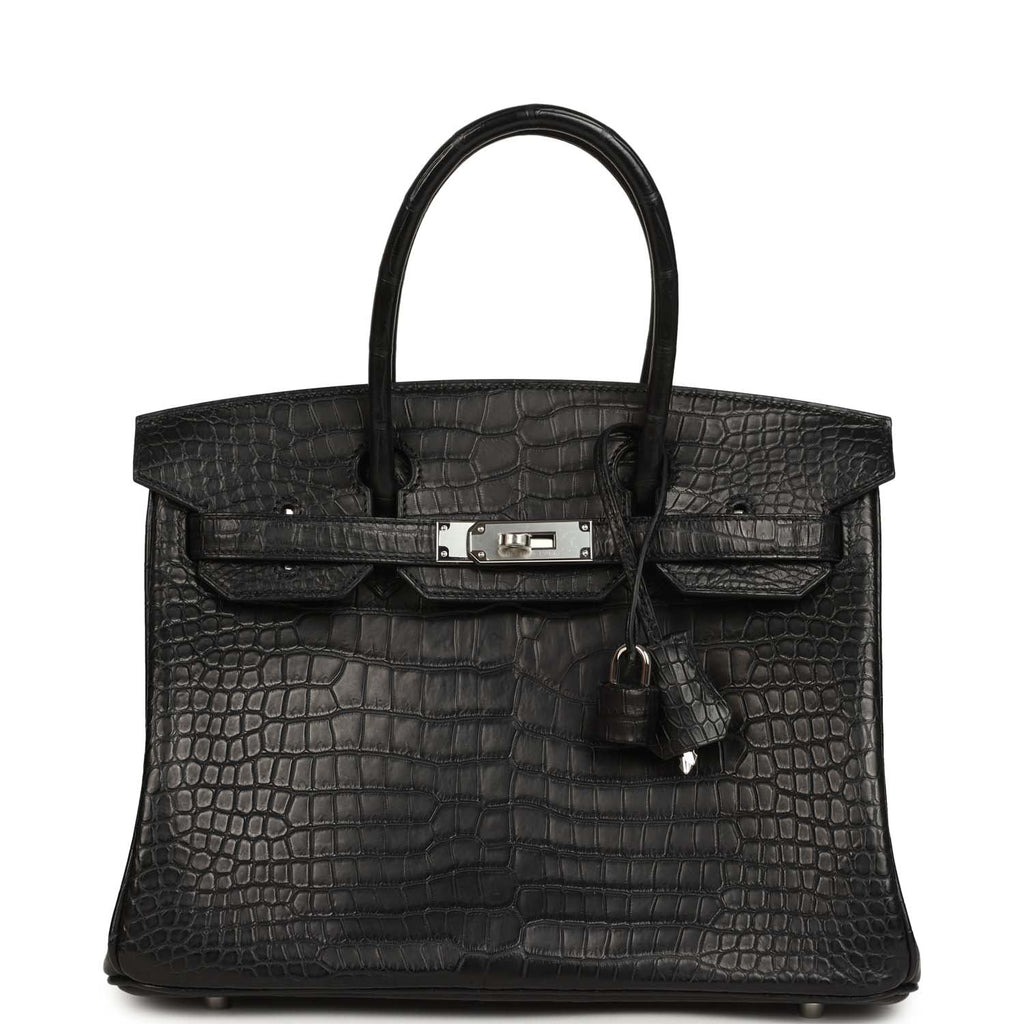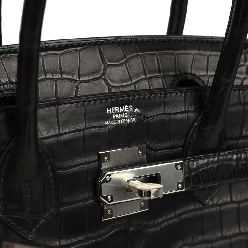 Hermes Birkin 30 Black Matte Porosus Crocodile Palladium Hardware