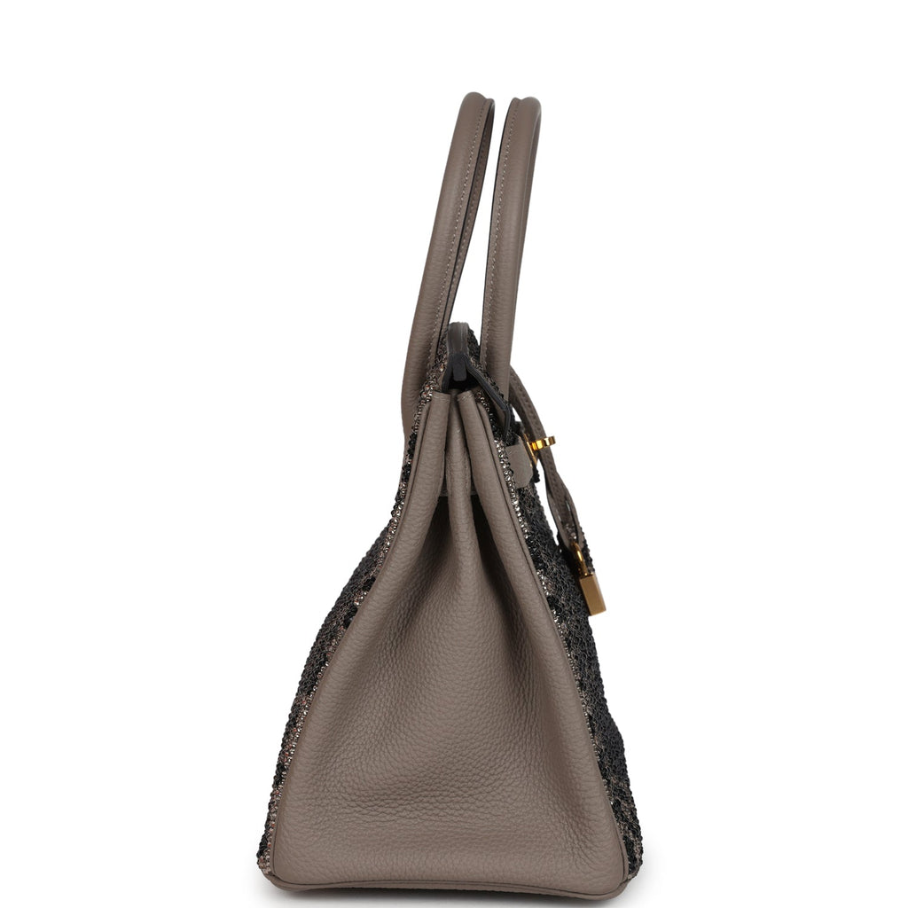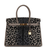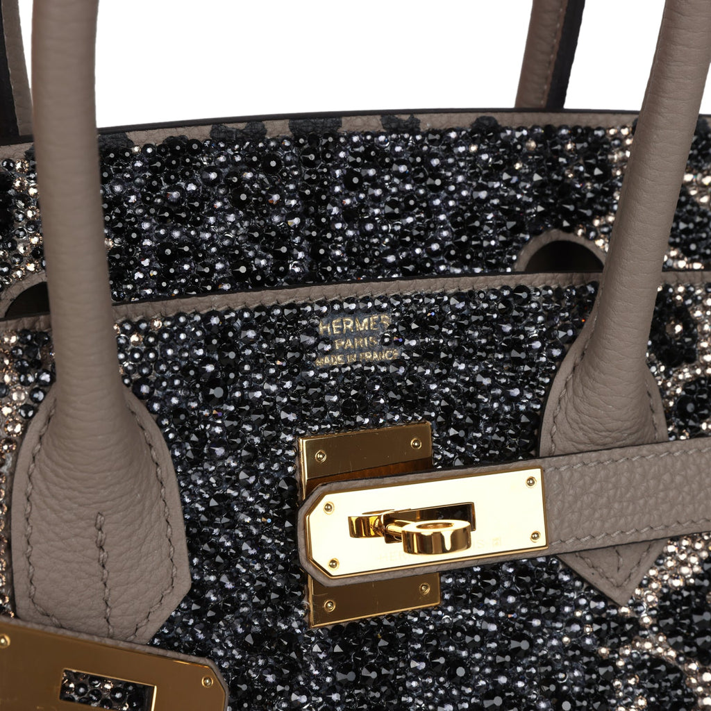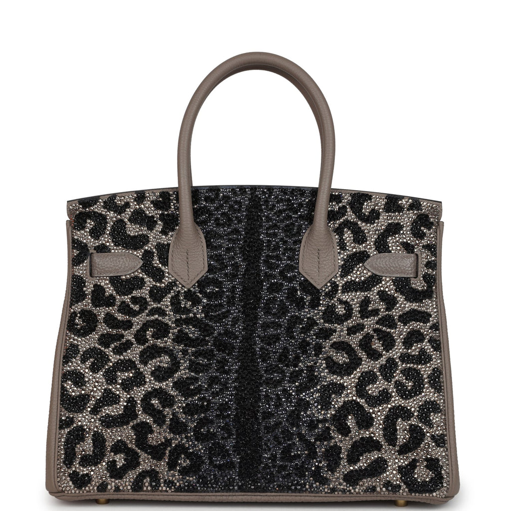 Custom Leopard Swarovski Crystal Hermes Birkin 30 Gris Asphalte Togo Gold Hardware