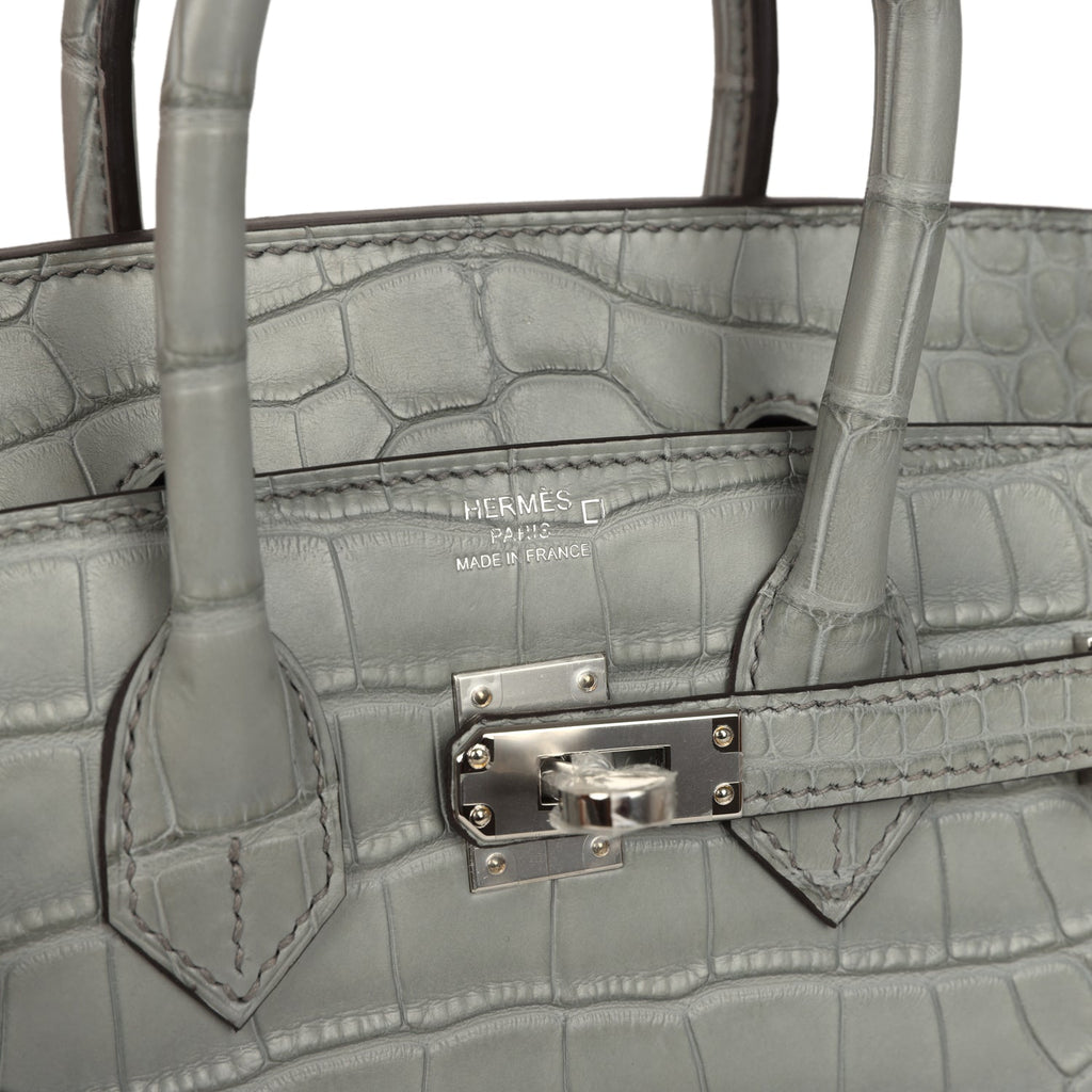 Hermes Birkin Sellier 25 Gris Ciment Matte Alligator Palladium Hardware