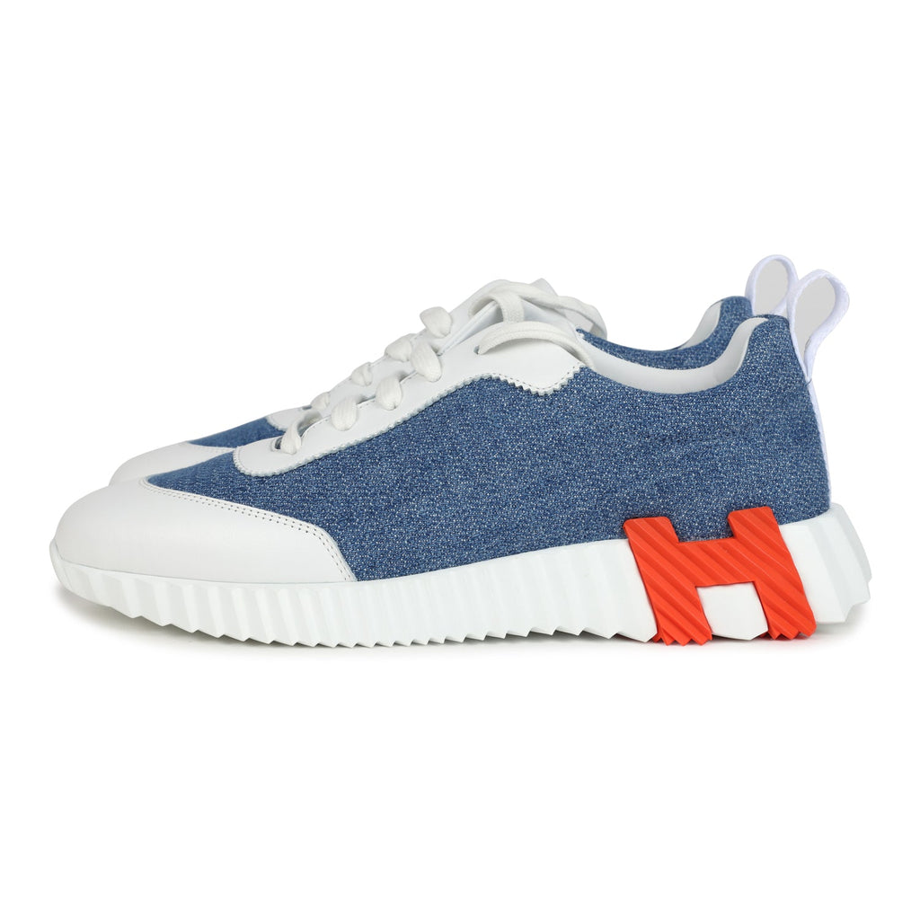 Hermes Bouncing Sneaker Bleu Clair Denim and Blanc Calfskin 38 EU