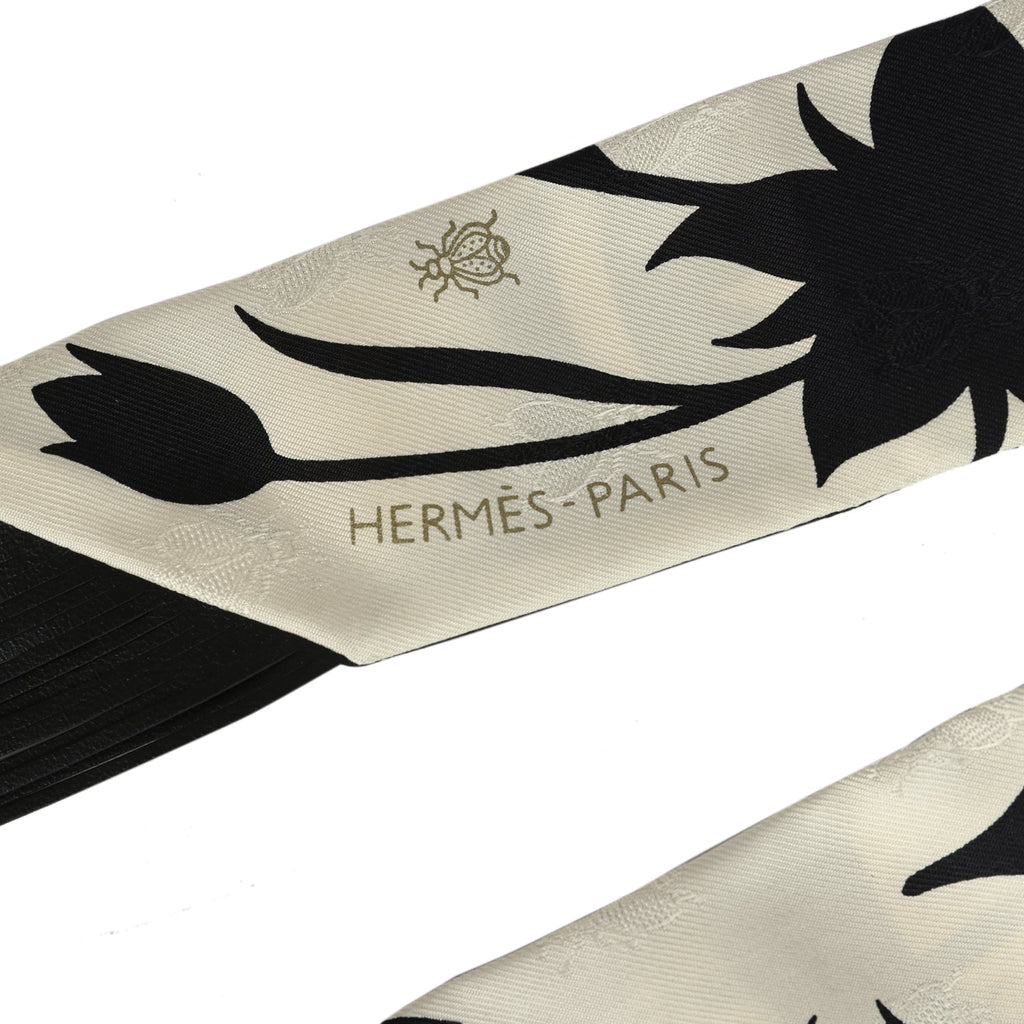 Hermes "Bouquet Final" Cream and Black Fringe Silk Twilly