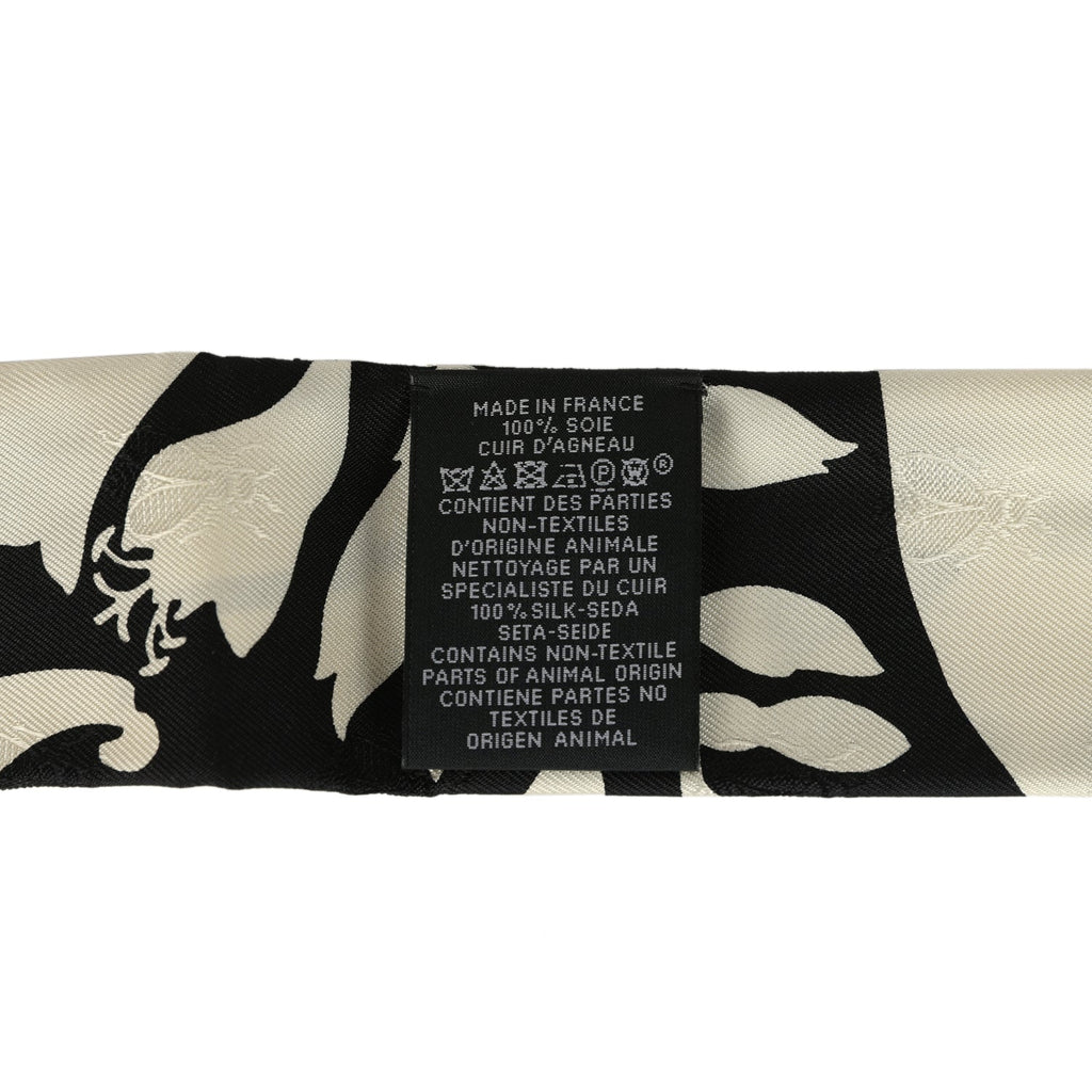 Hermes "Bouquet Final" Cream and Black Fringe Silk Twilly