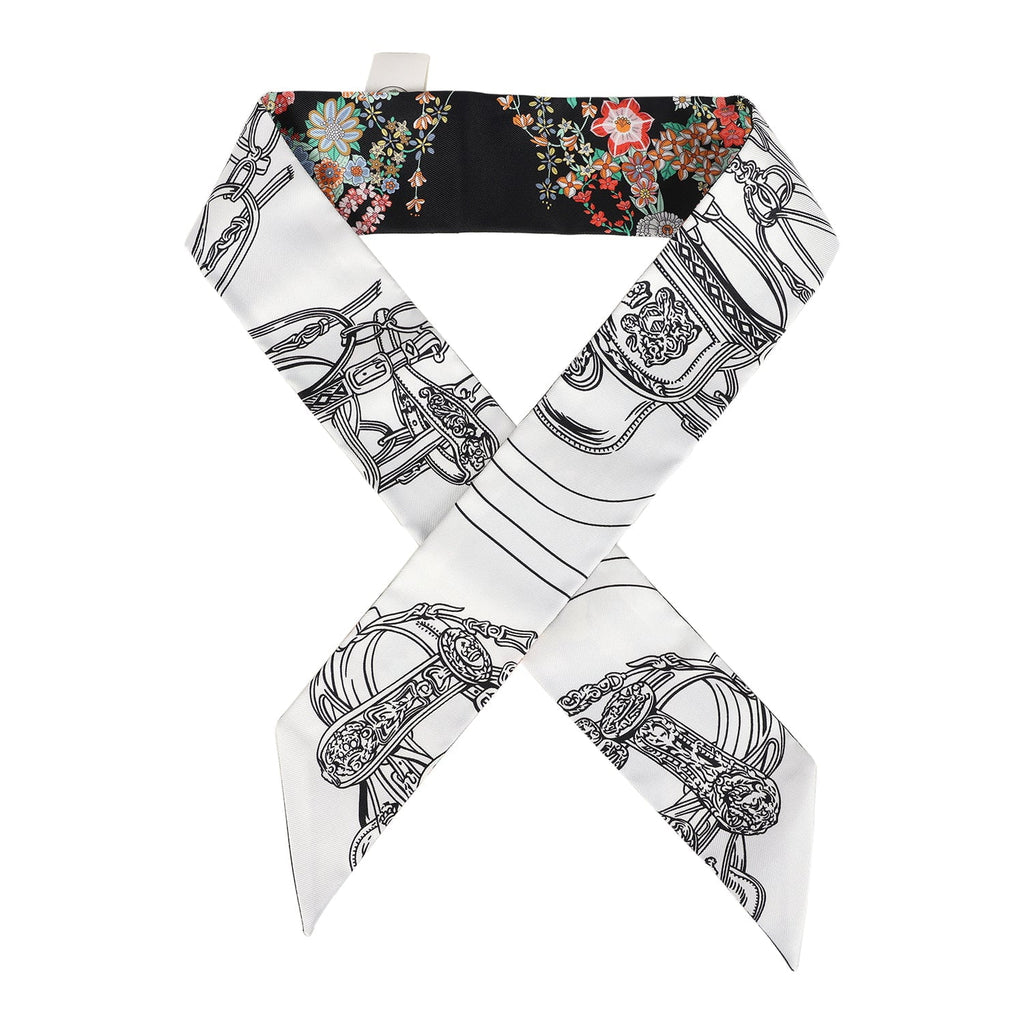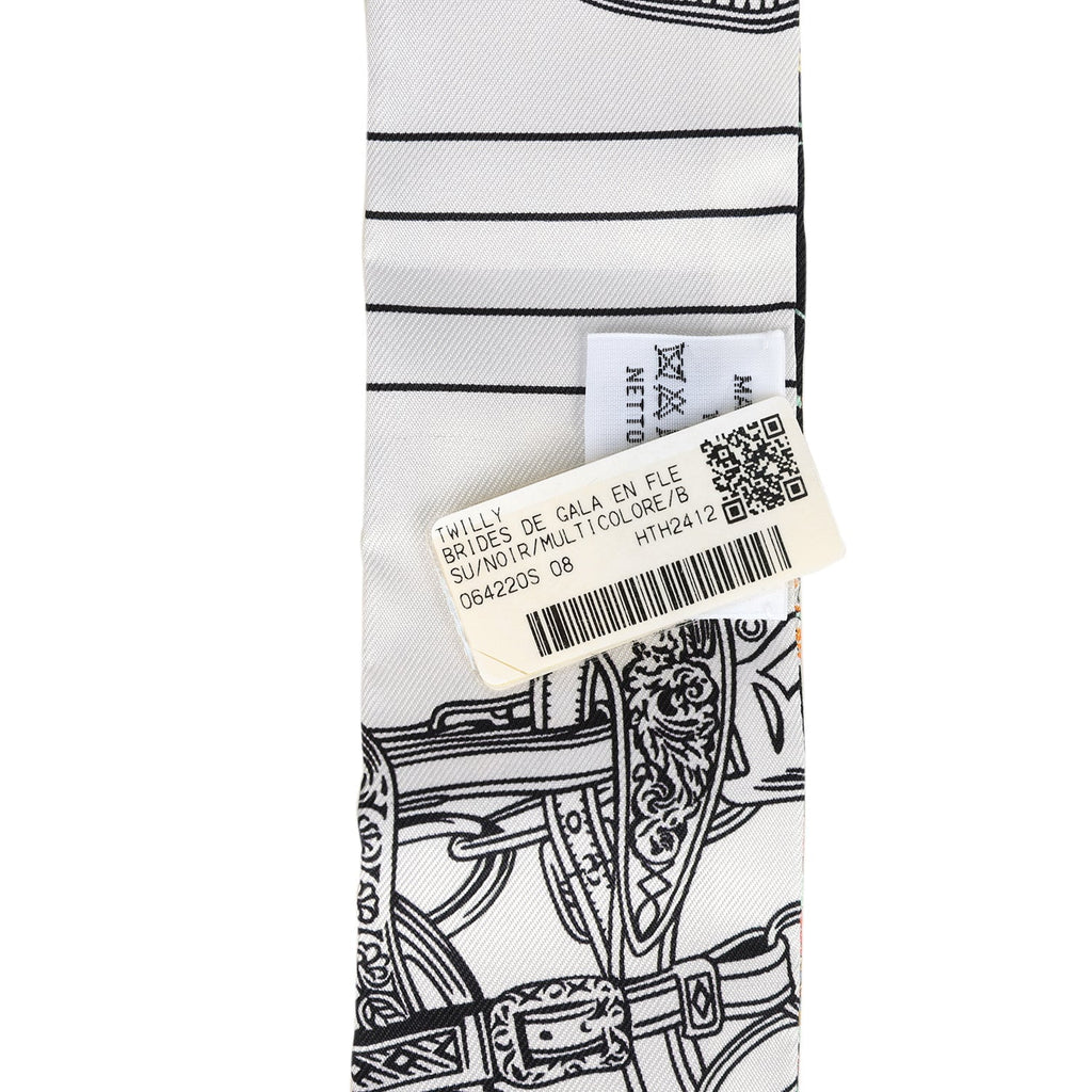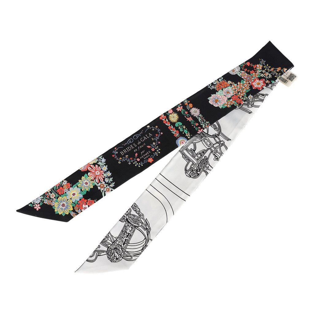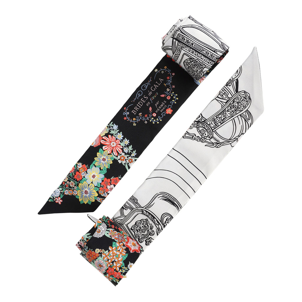 Hermes "Brides de Gala En Fleur" Blanc and Black Multi Silk Twilly Pair