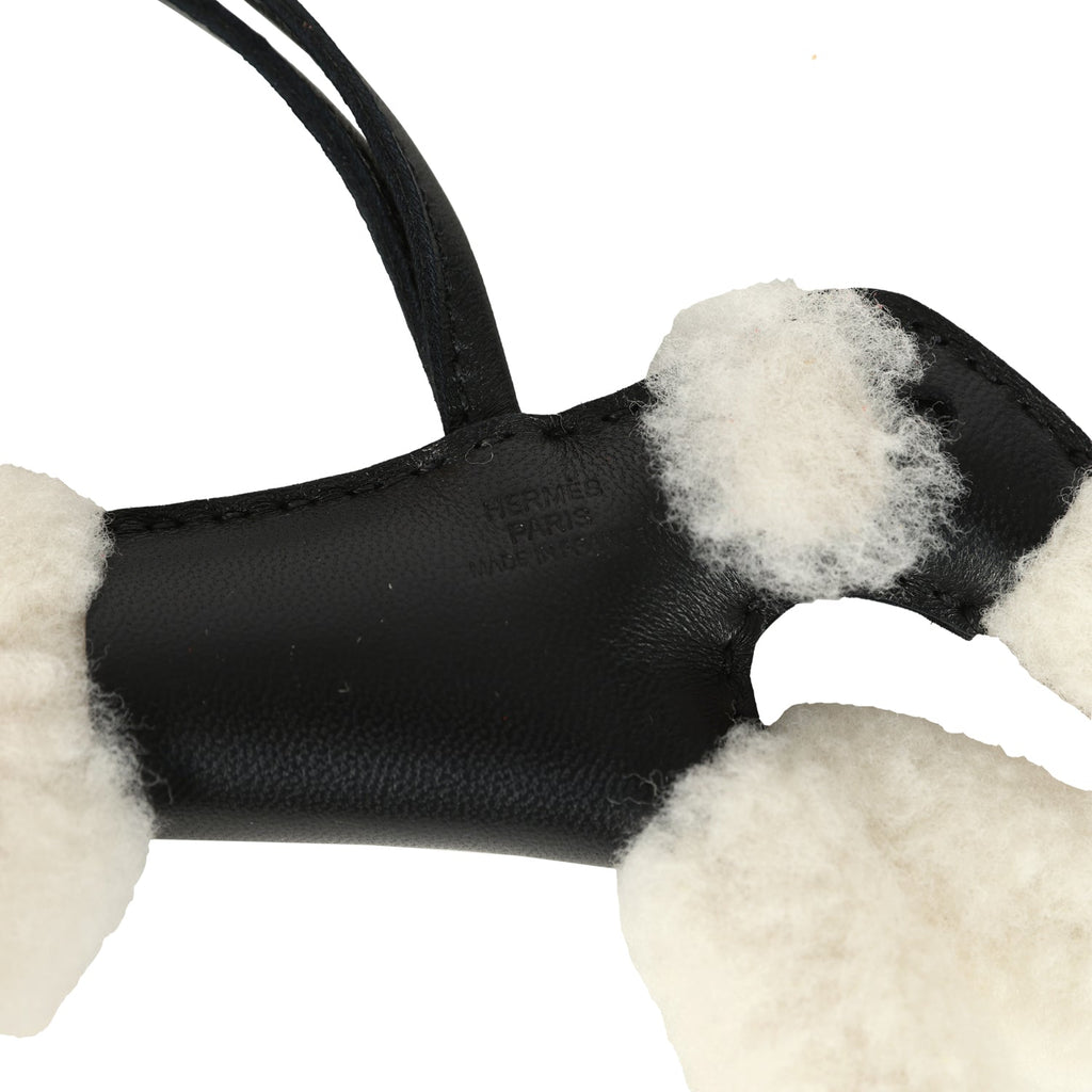 Hermes Budy Charm Black Milo Lambskin and Ecru Merino Sheepskin