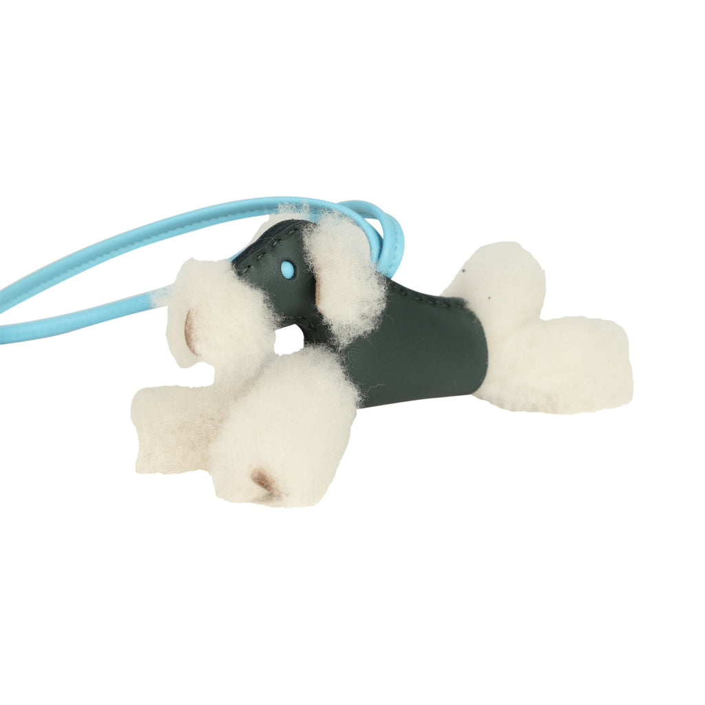 Hermes Budy Charm Vert Mangrove and Celeste Milo Lambskin and Ecru Merino Wool