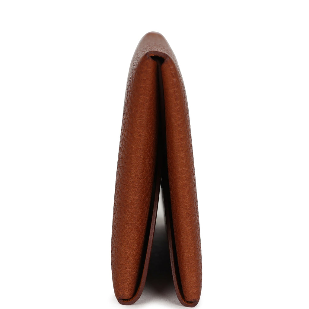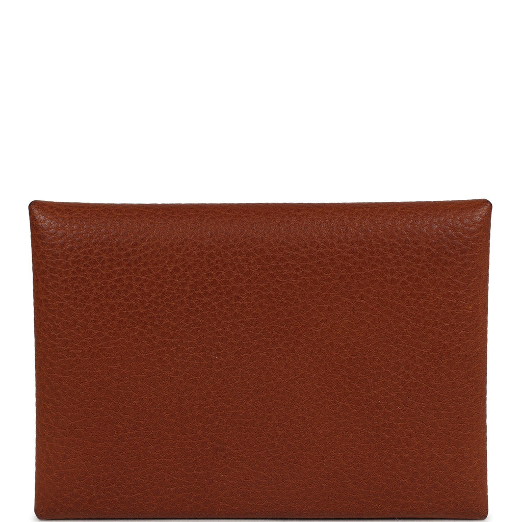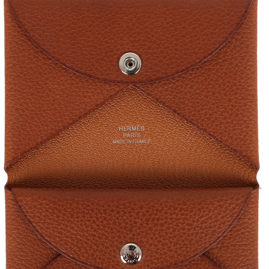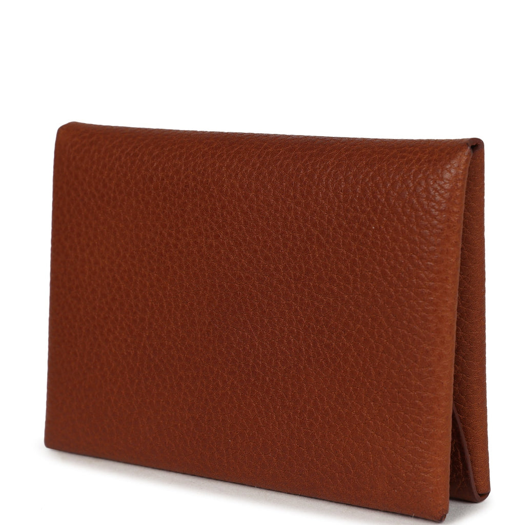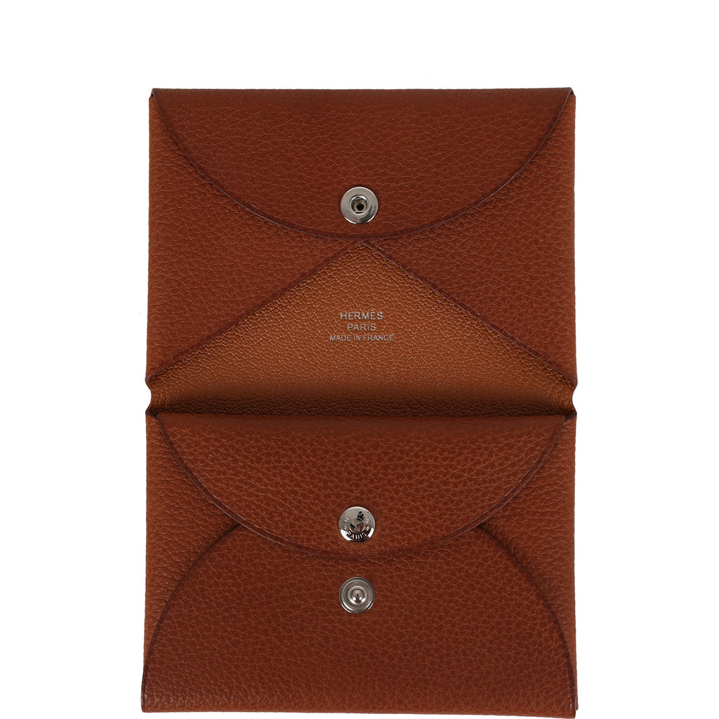 Hermes Calvi Duo Card Holder Fauve Barenia Faubourg Palladium Hardware