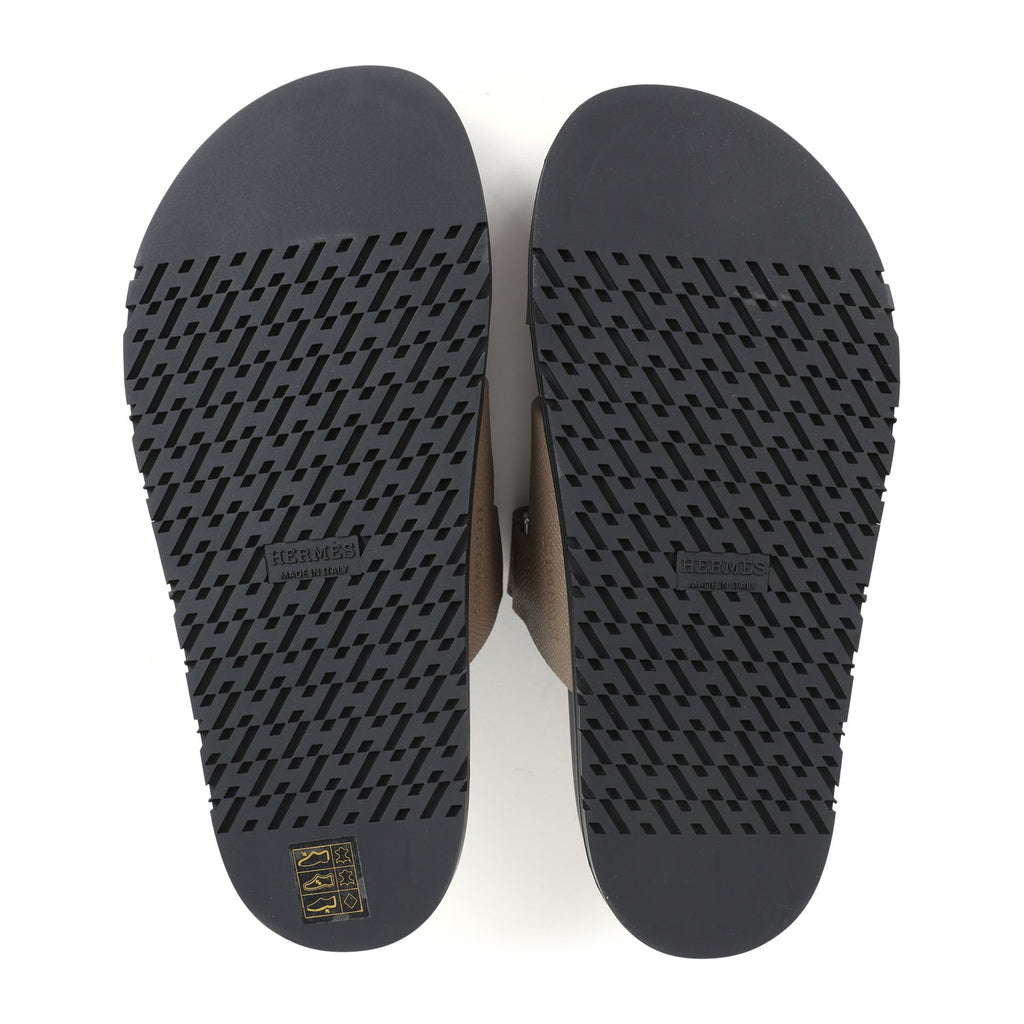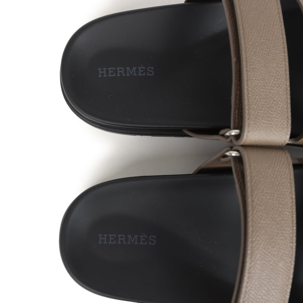 Hermes Chypre Sandals Etoupe Epsom Palladium Hardware 37 EU