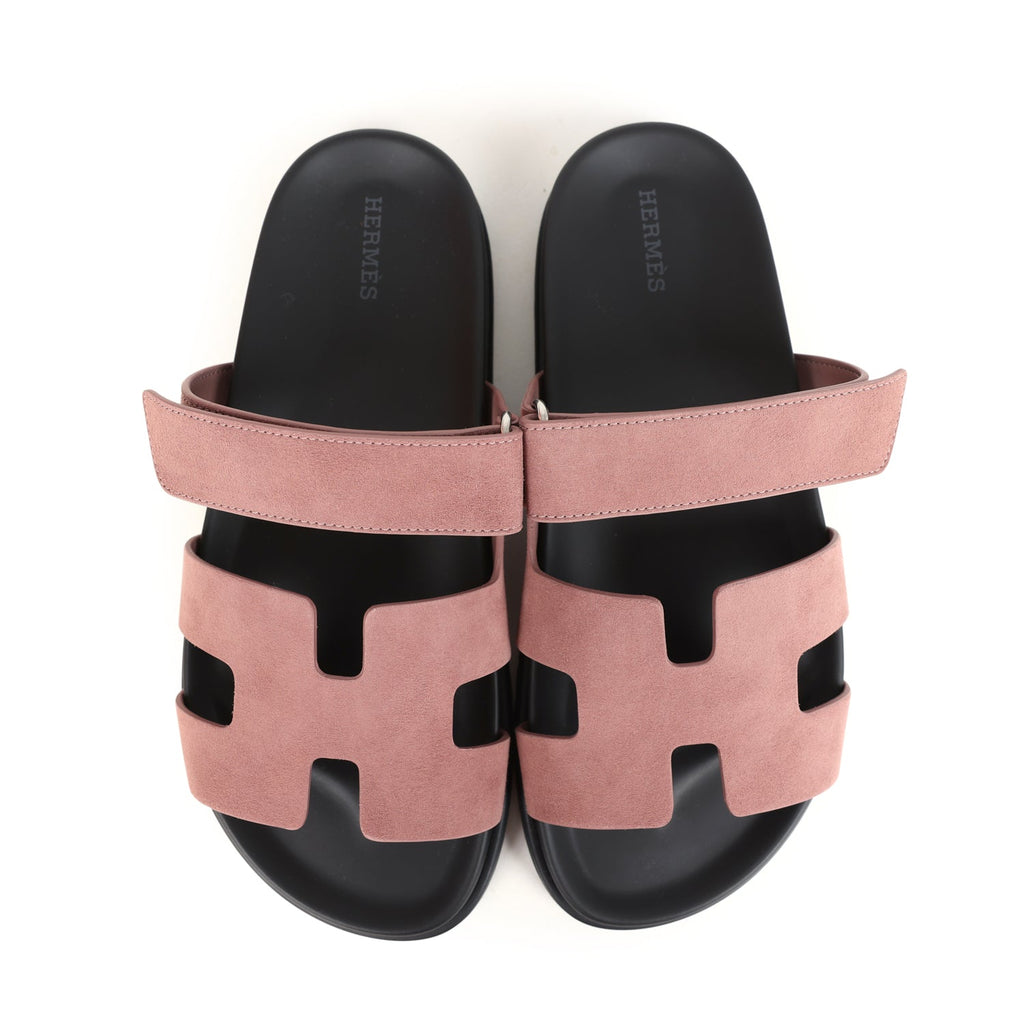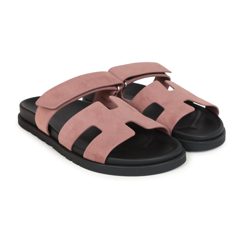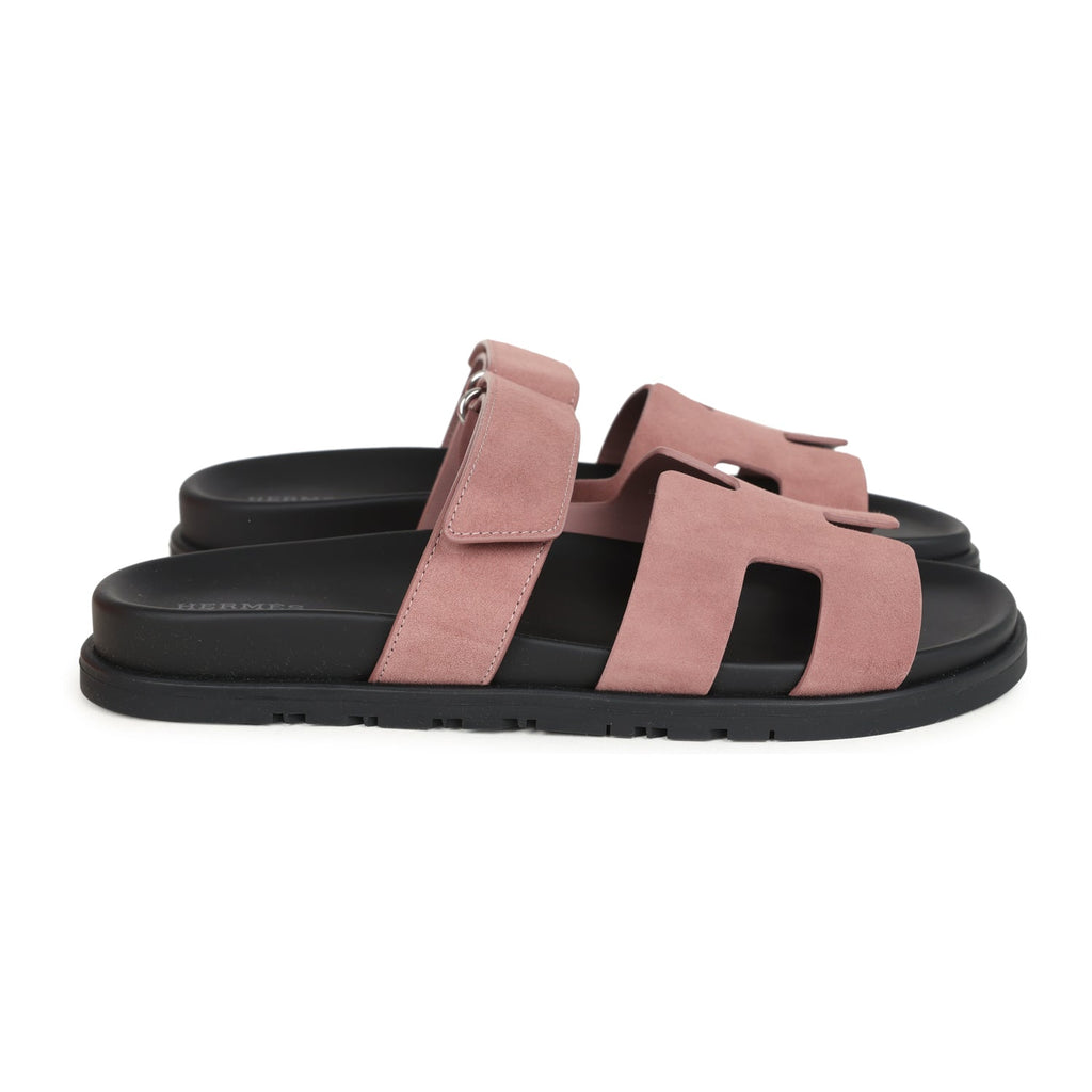Hermes Chypre Techno Sandal Rose Antique Suede Palladium Hardware 39 EU