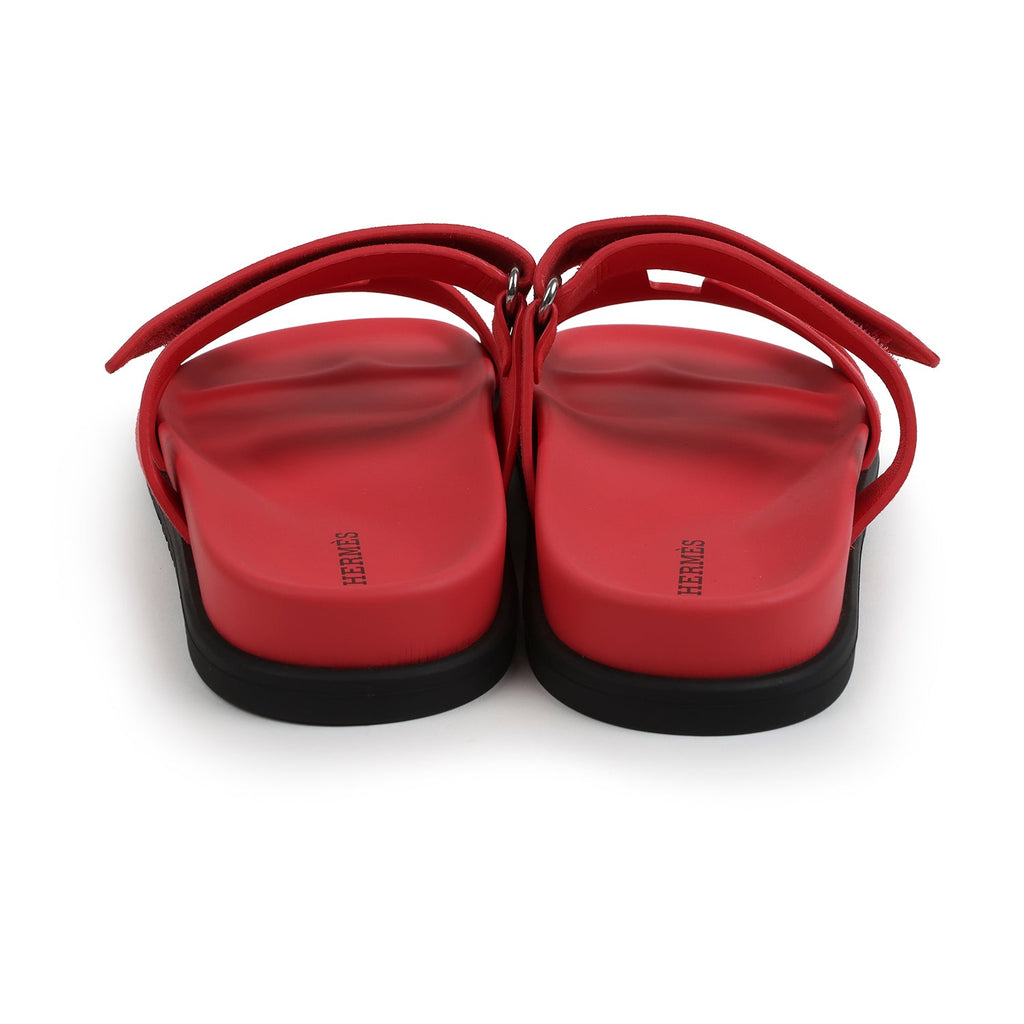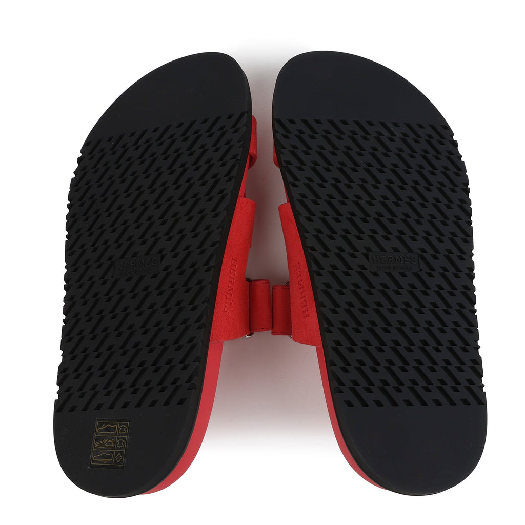 Hermes Chypre Techno Sandal Rose Vermillon Suede Palladium Hardware 38 EU