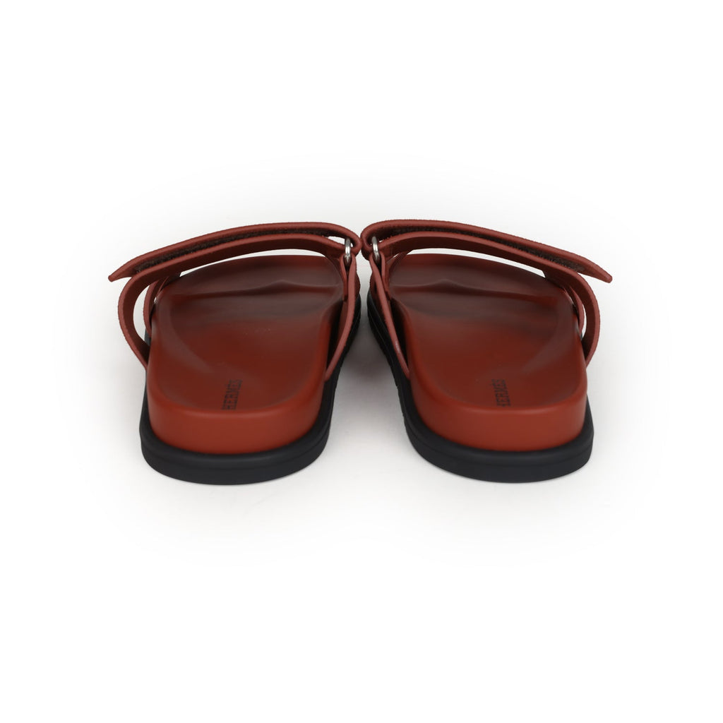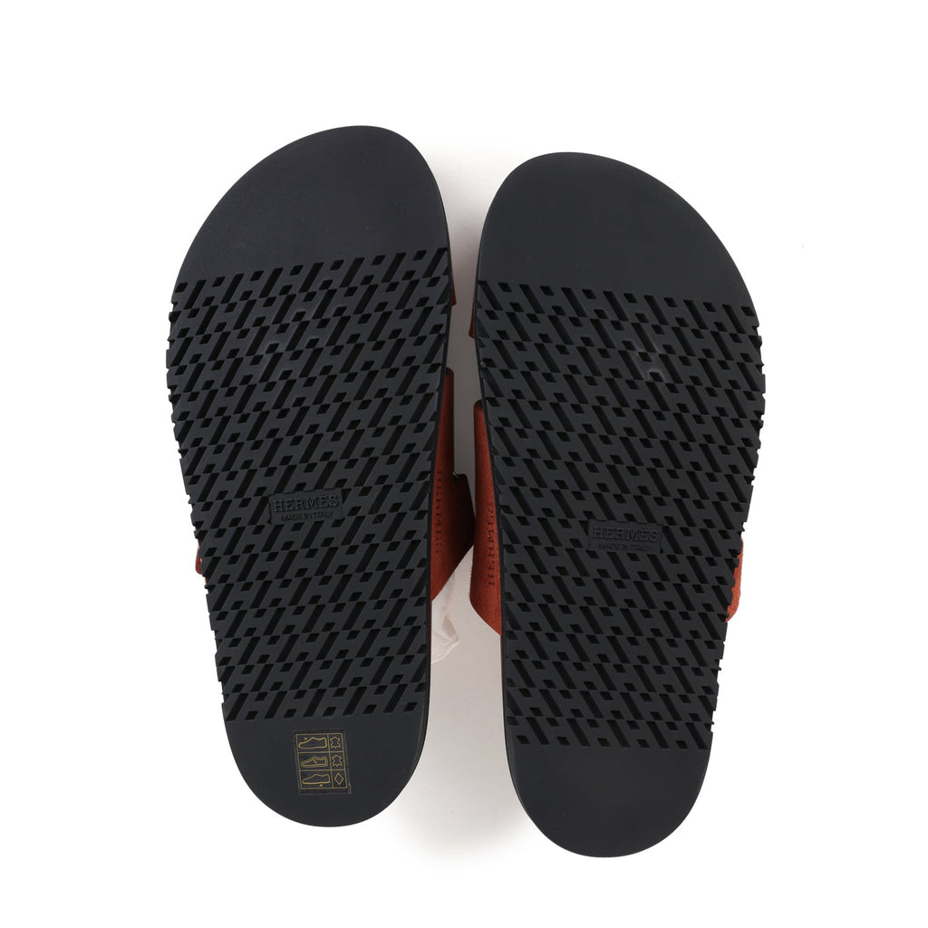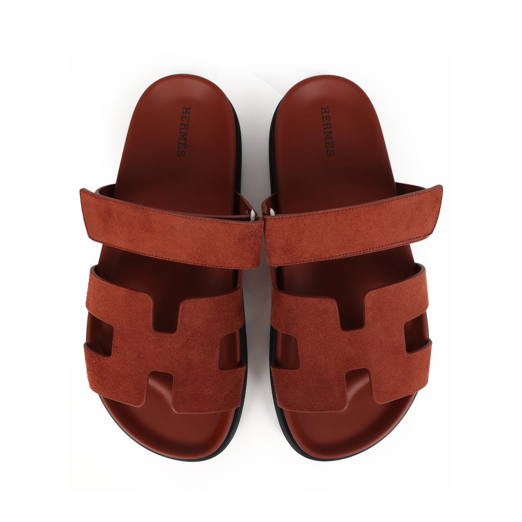 Hermes Chypre Techno Sandals Maroon Muscavado Suede Palladium Hardware 38.5 EU