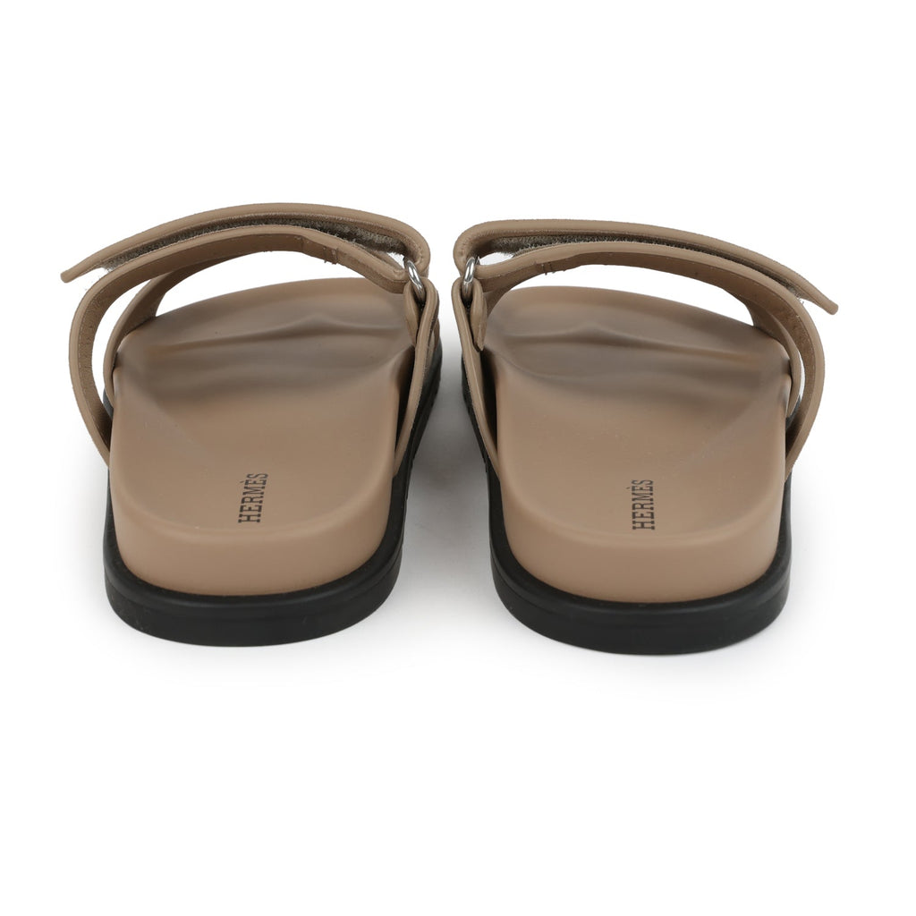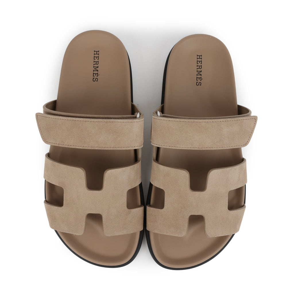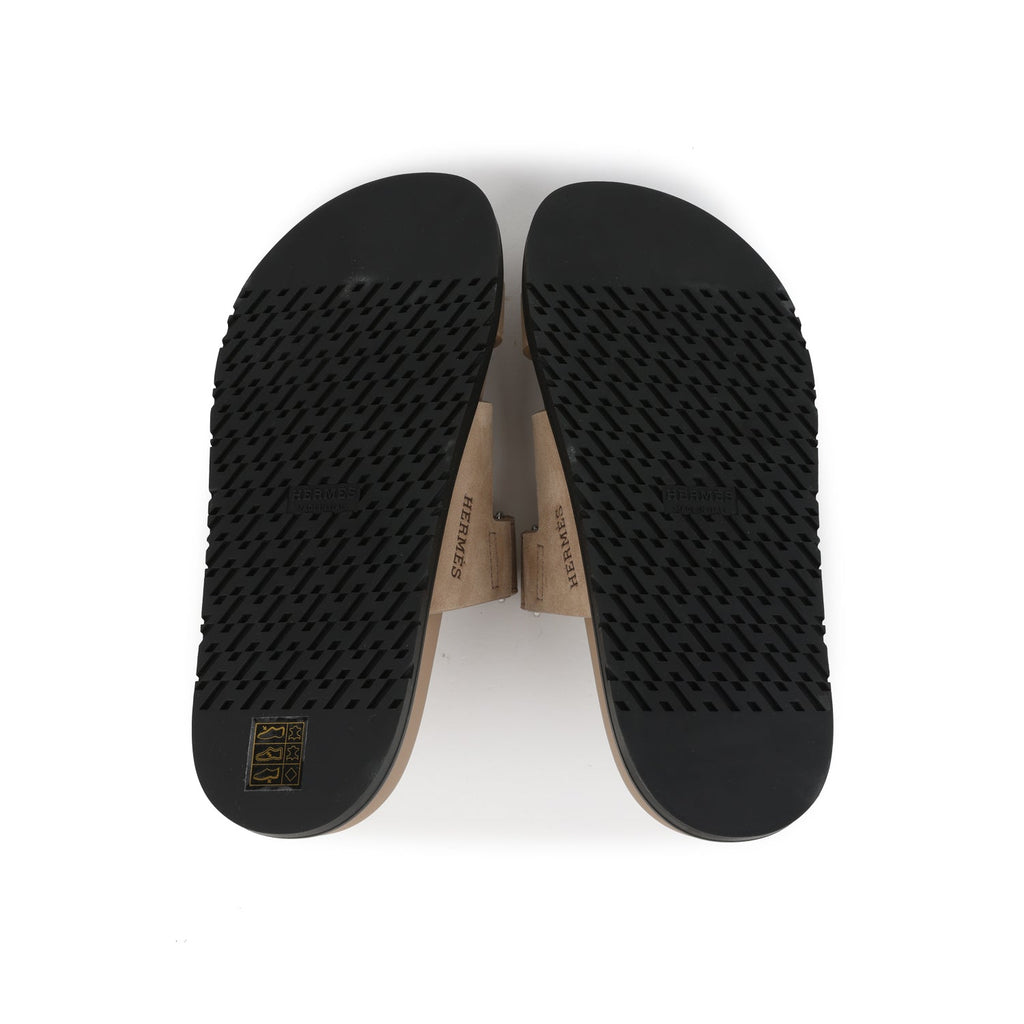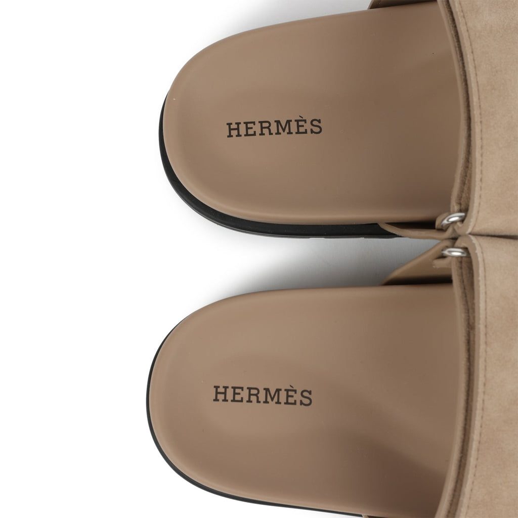 Hermes Chypre Techno Sandals Beige Sable Suede Palladium Hardware 38 EU