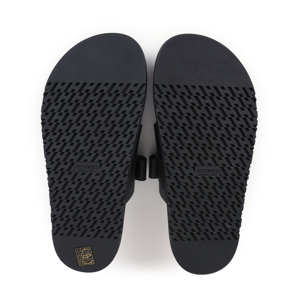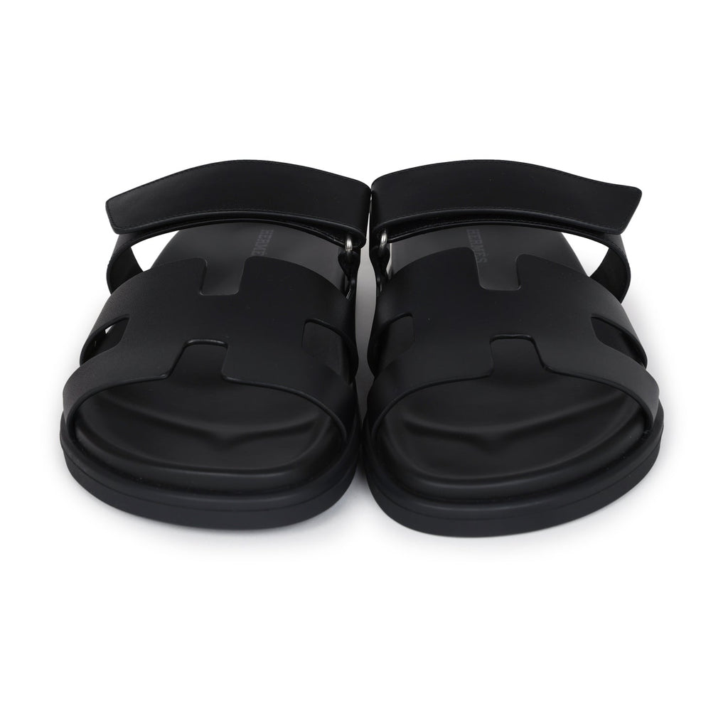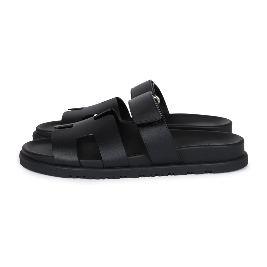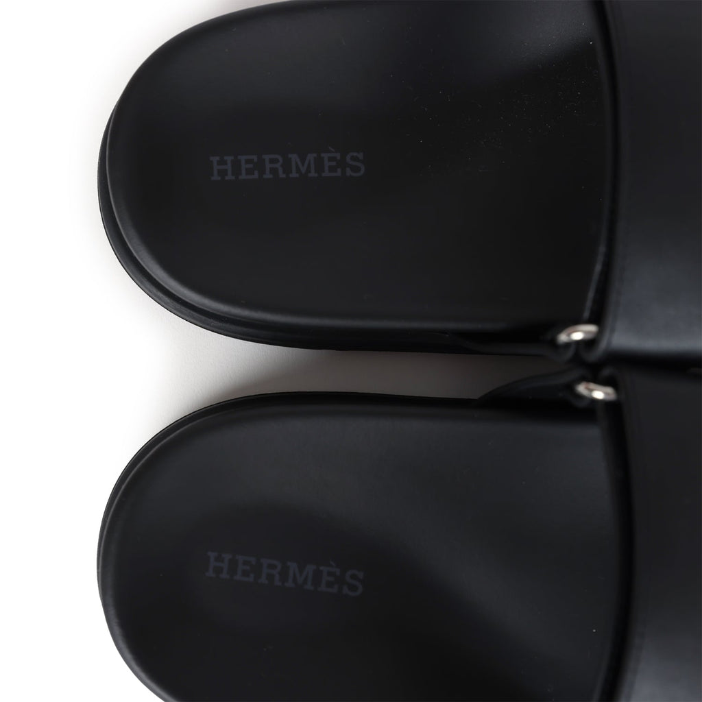 Hermes Chypre Techno Sandals Black Calfskin Palladium Hardware 38 EU