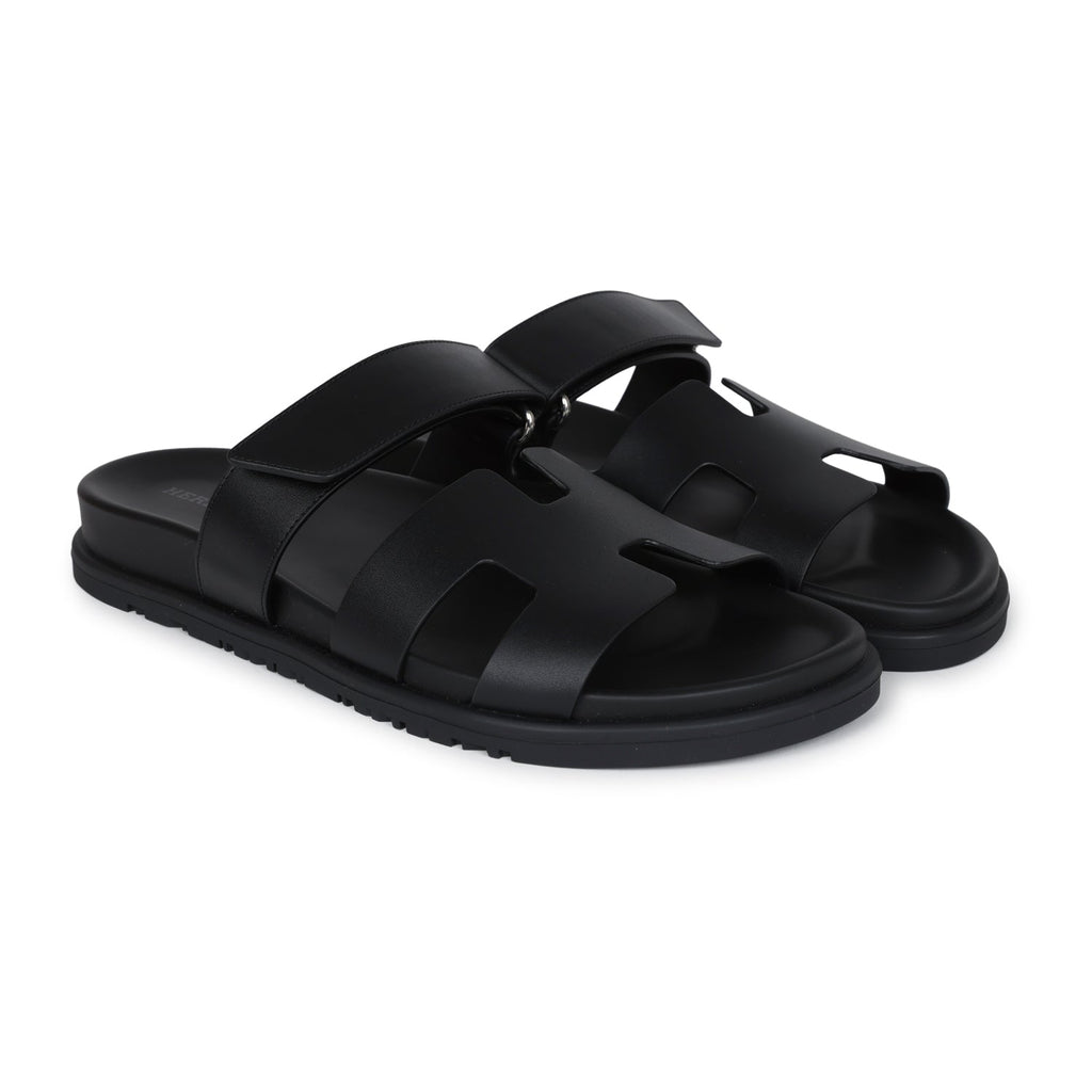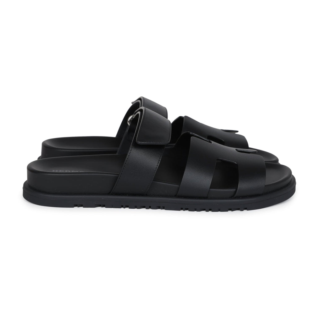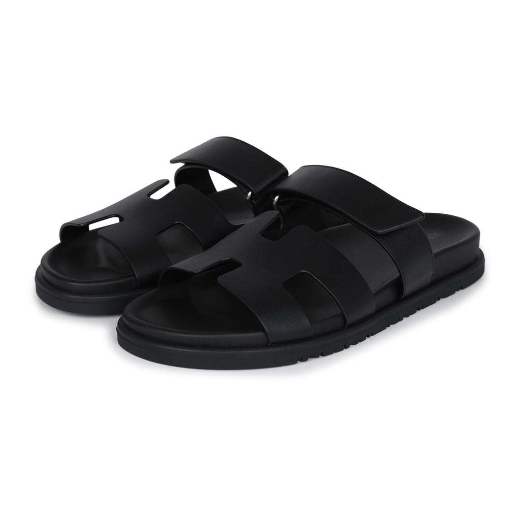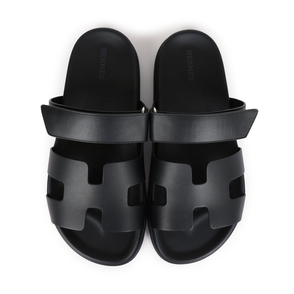 Hermes Chypre Techno Sandals Black Calfskin Palladium Hardware 38 EU