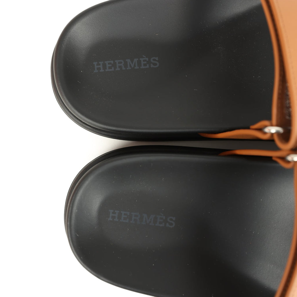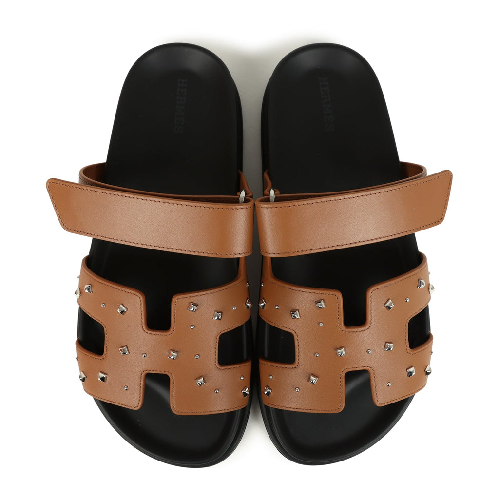 Hermes Chypre Techno Sandals Naturel Studded Calfskin Palladium Hardware 38 EU