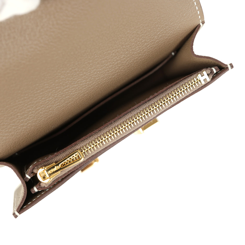 Hermes Constance Slim Compact Wallet Etoupe Evercolor Gold Hardware