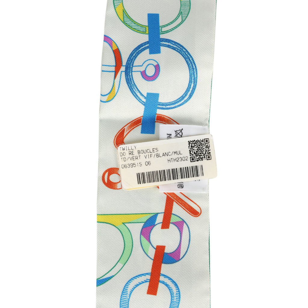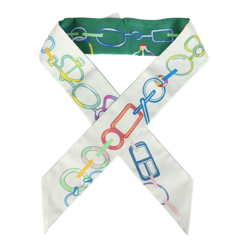 Hermes "Do Ro Boucles" Vert Vif and Blanc Multi Silk Twilly