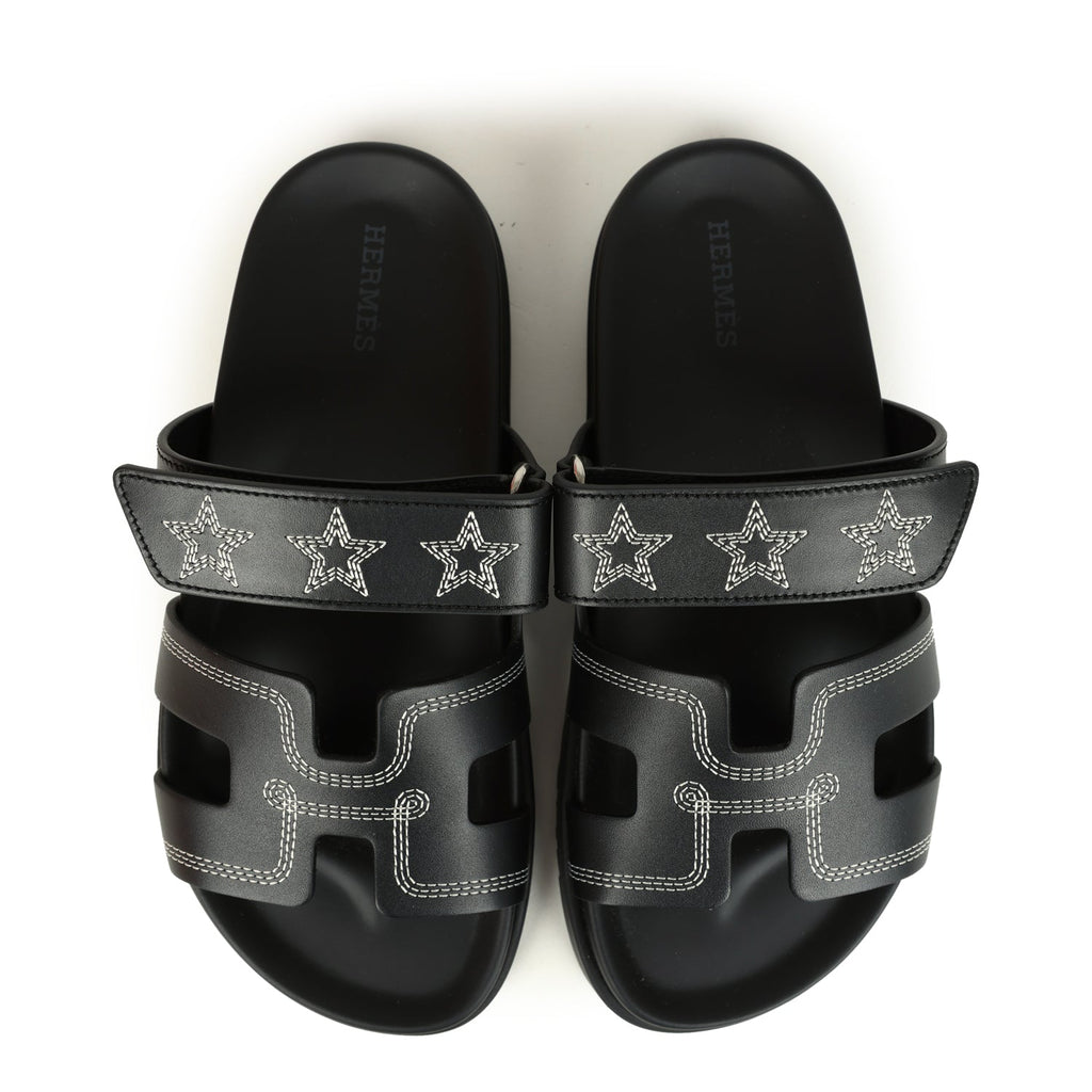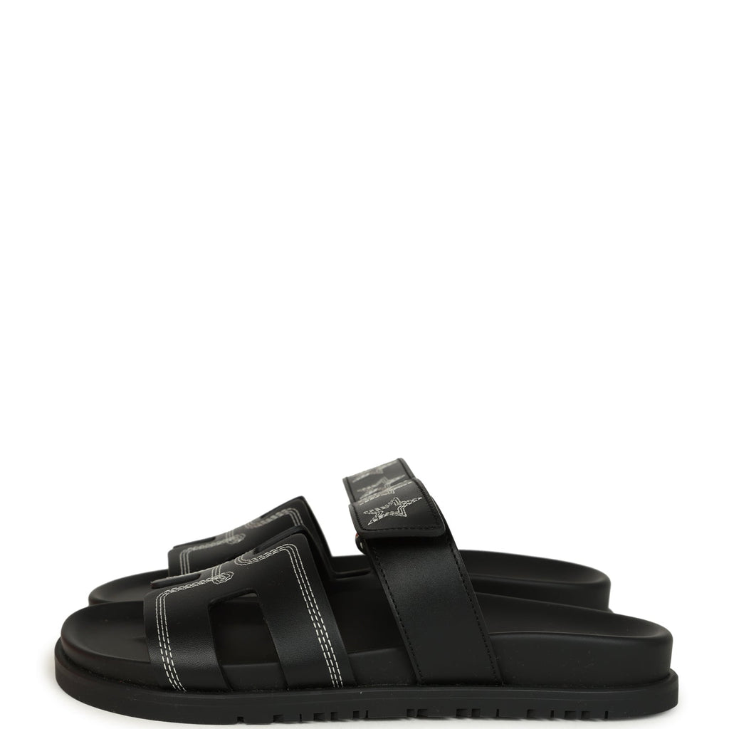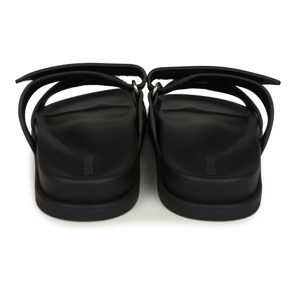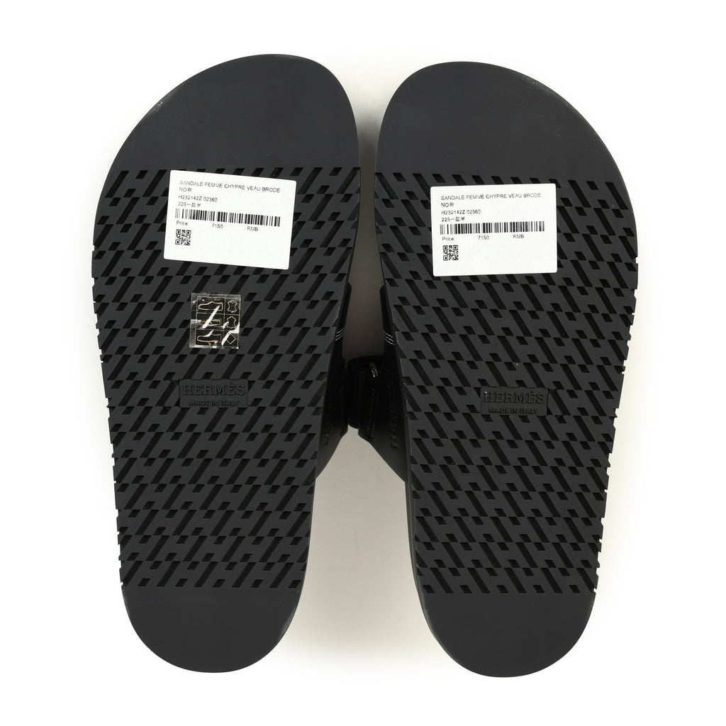 Hermes Embroidered Chypre Techno Sandals Black Calfskin Palladium Hardware 36 EU