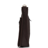 This Evelyne is in Ebene Barenia Faubourg leather with gold hardware and has tonal stitching, large perforated H in circle (front) pull tab top closure and Ficelle removable canvas and leather shoulder/crossbody strap.