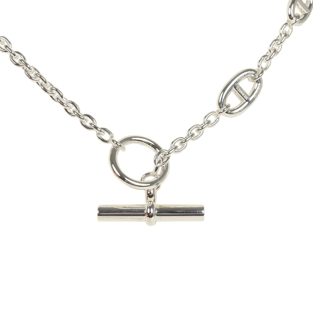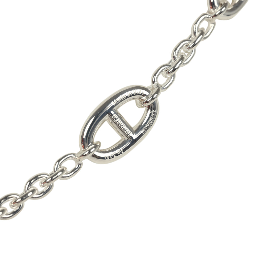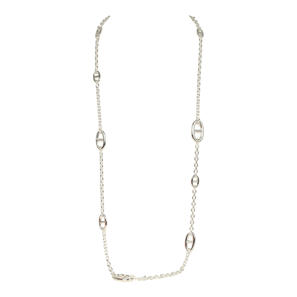 This Hermes Farandole Rope necklace is in sterling silver hardware, featuring a 80cm length necklace with sterling silver chaine d'ancre motif links in different sizes and has a bar and toggle closure.
