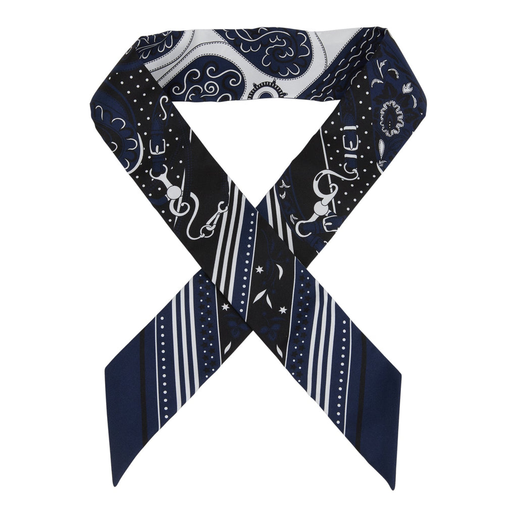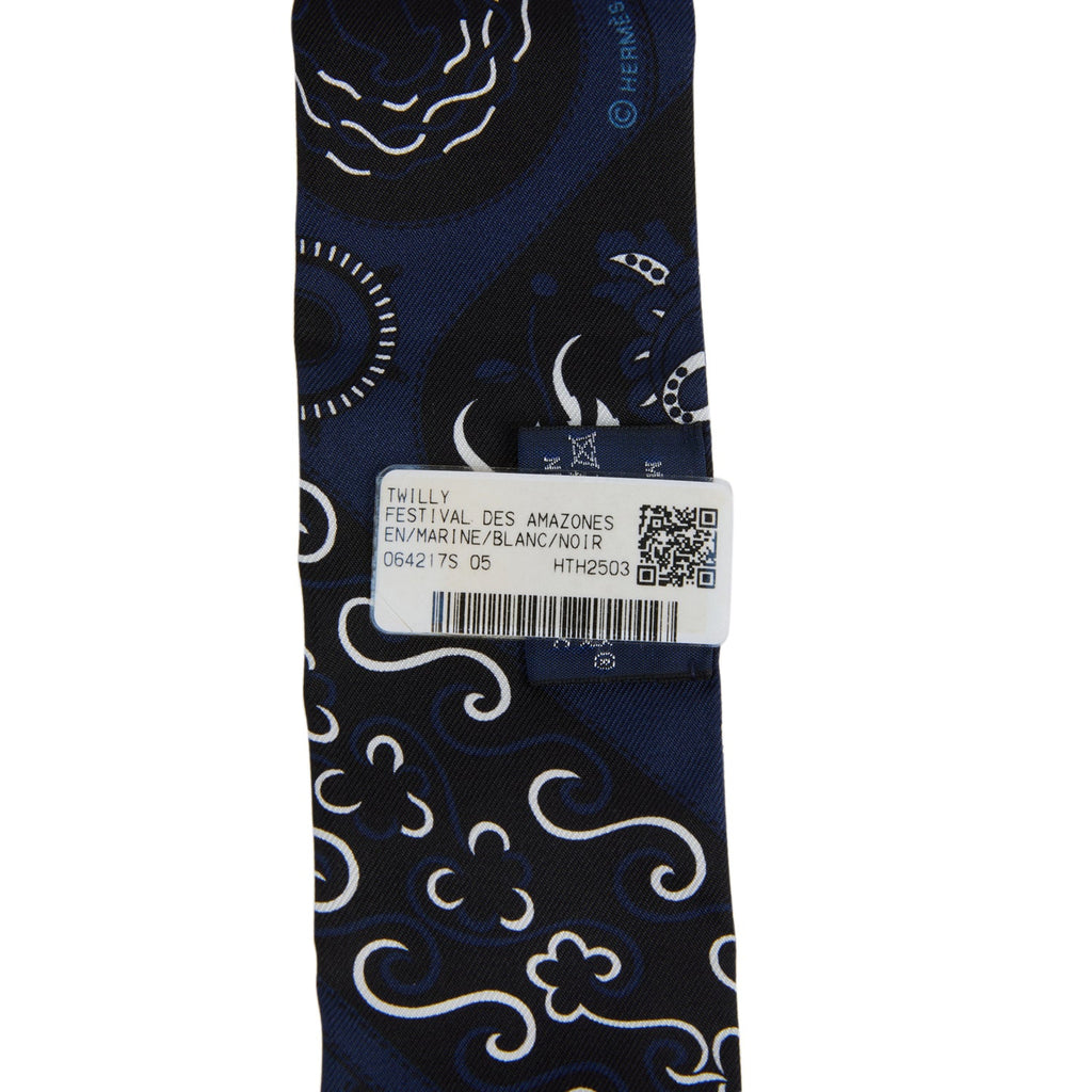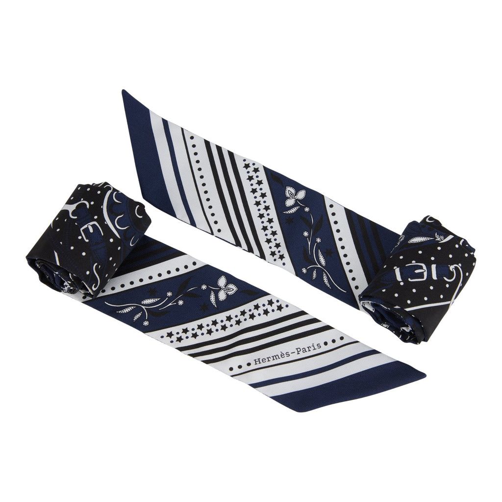 Hermes "Festival Des Amazones" Blanc, Black and Marine Multi Silk Twilly Pair