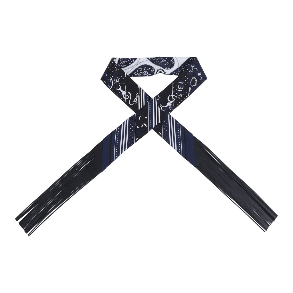 Hermes "Festival des Amazones" Marine, White and Black Fringe Twilly
