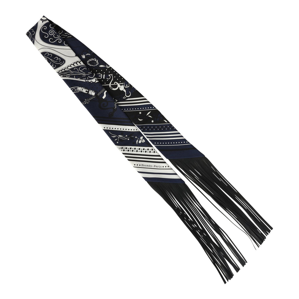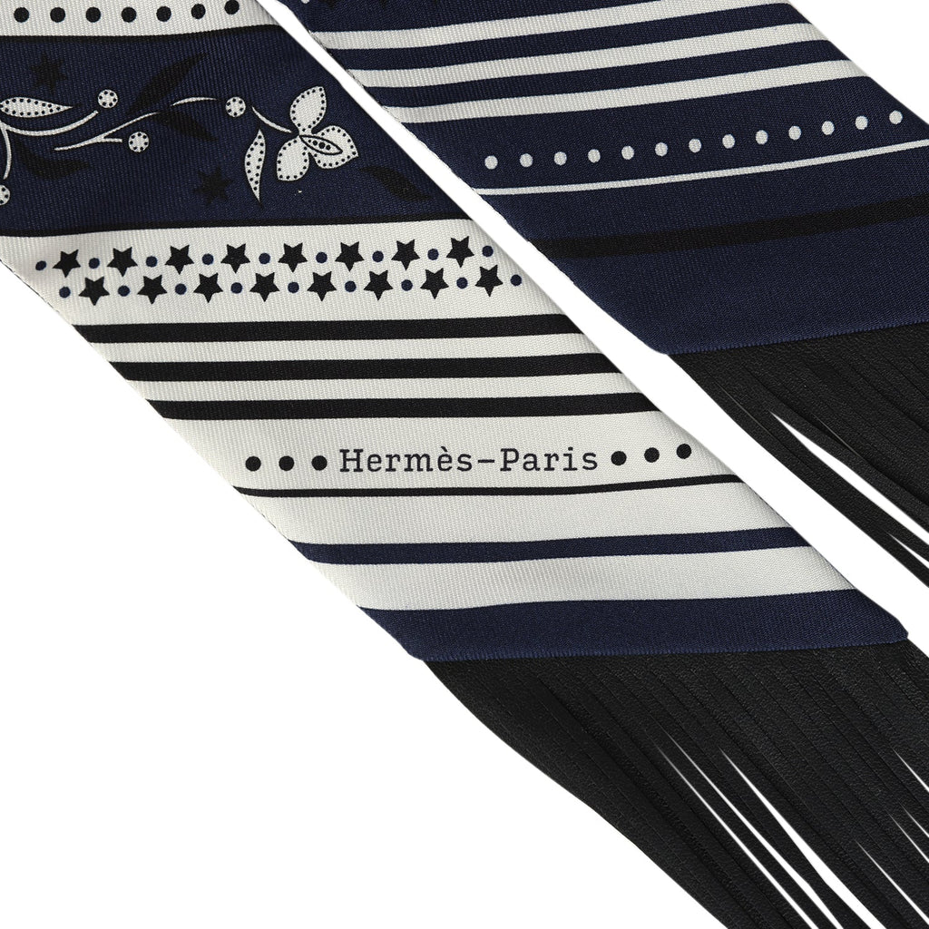 Hermes "Festival des Amazones" Marine, White and Black Fringe Twilly