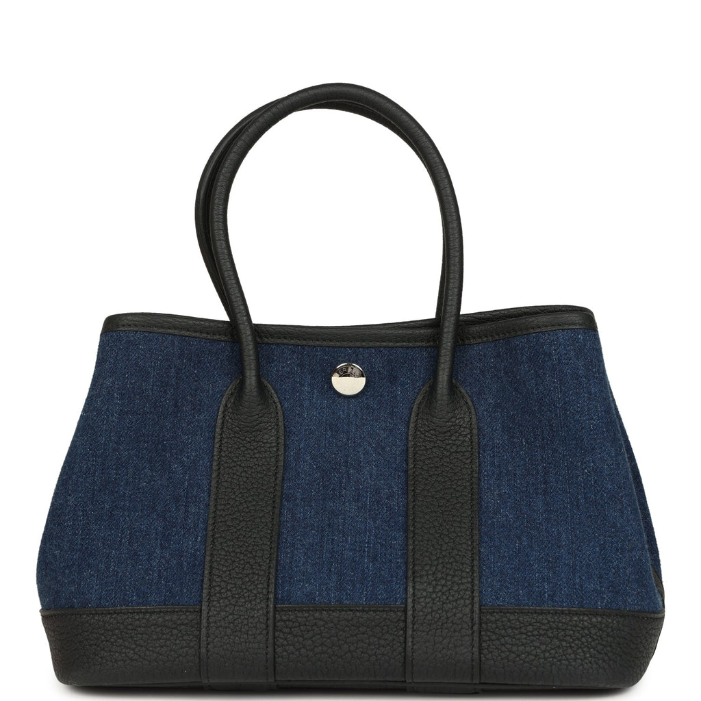 Hermes Garden Party Neo 23 Denim Moyen and Black Negonda Palladium Hardware