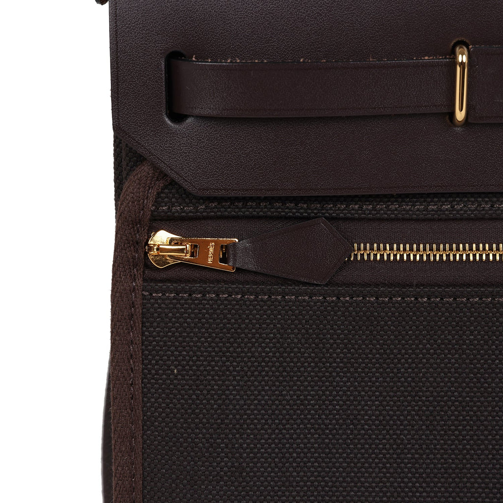 Hermes Herbag Zip 20 Mini Ebene Toile H Canvas and Vache Hunter Gold Hardware