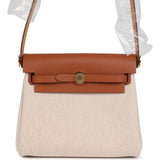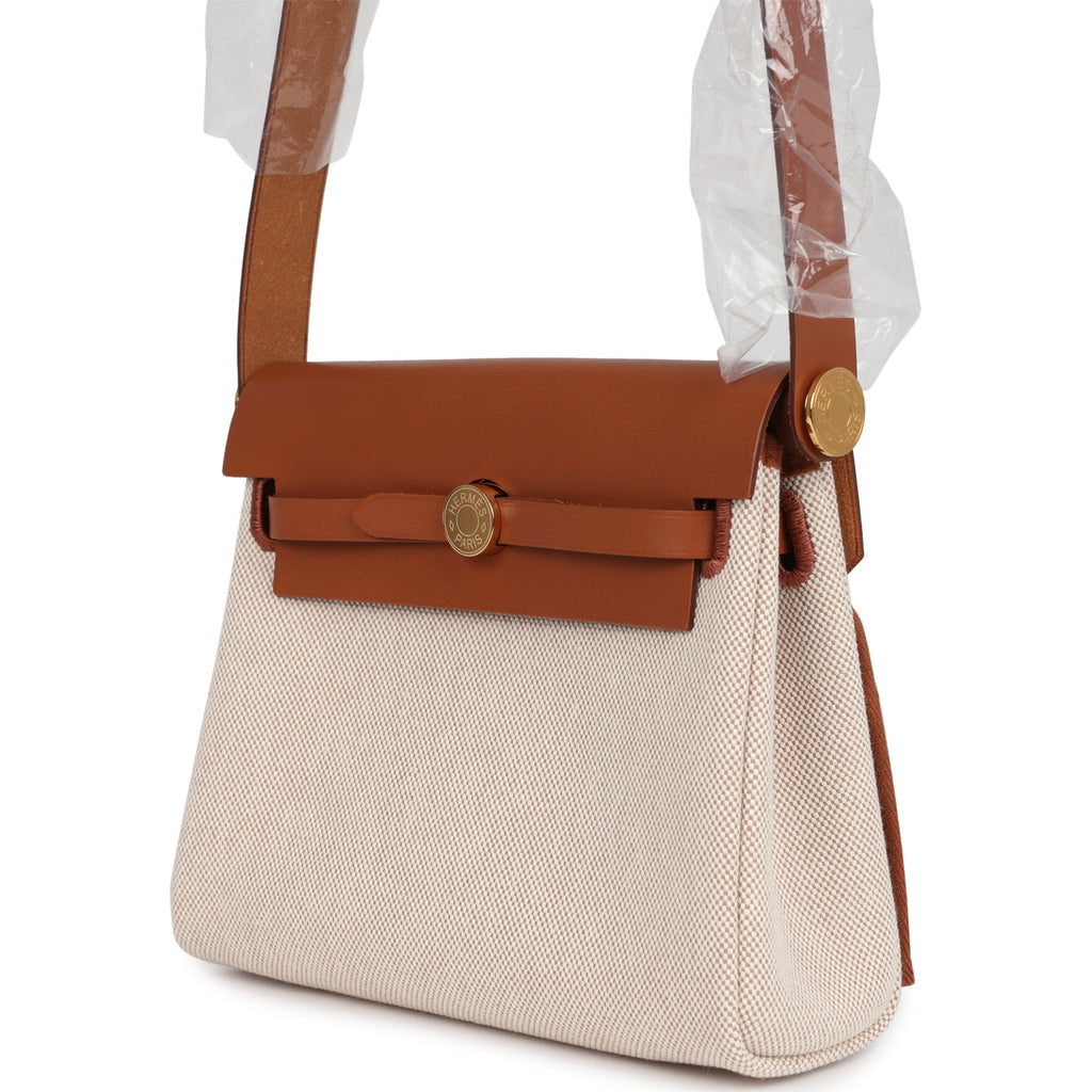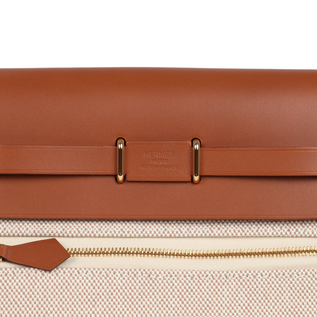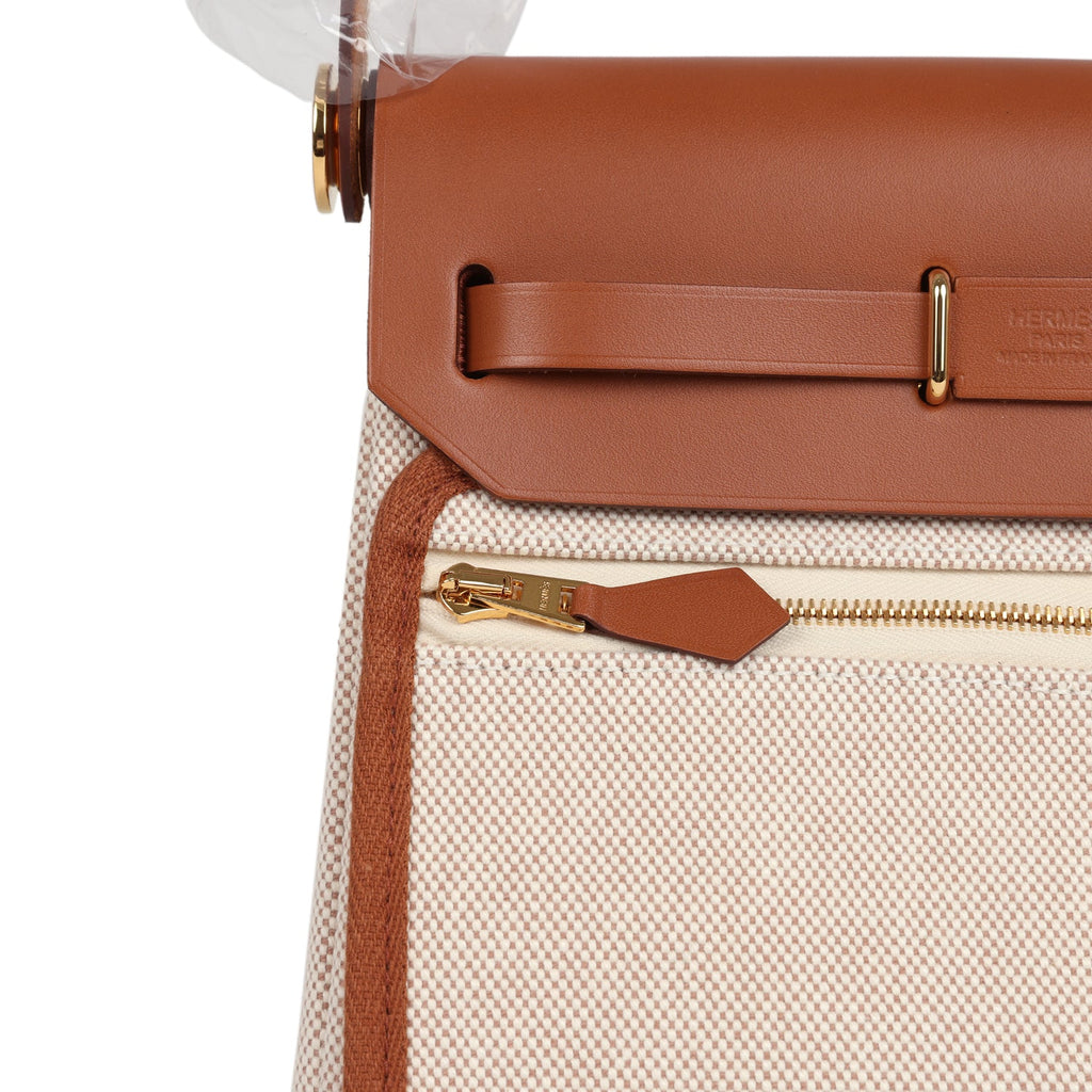 Hermes Herbag Zip 20 Mini Ecru and Beige Toile H Canvas and Fauve Vache Hunter Gold Hardware