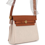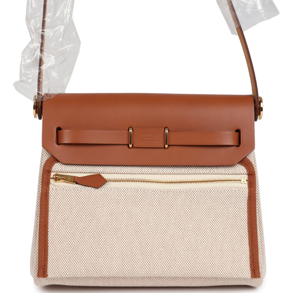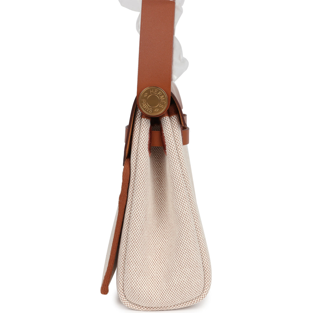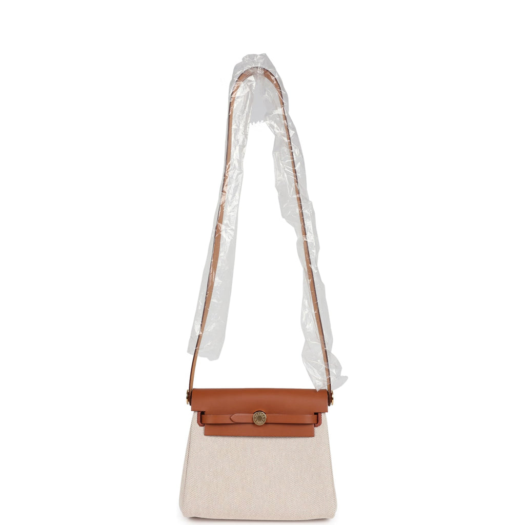 Hermes Herbag Zip 20 Mini Ecru and Beige Toile H Canvas and Fauve Vache Hunter Gold Hardware