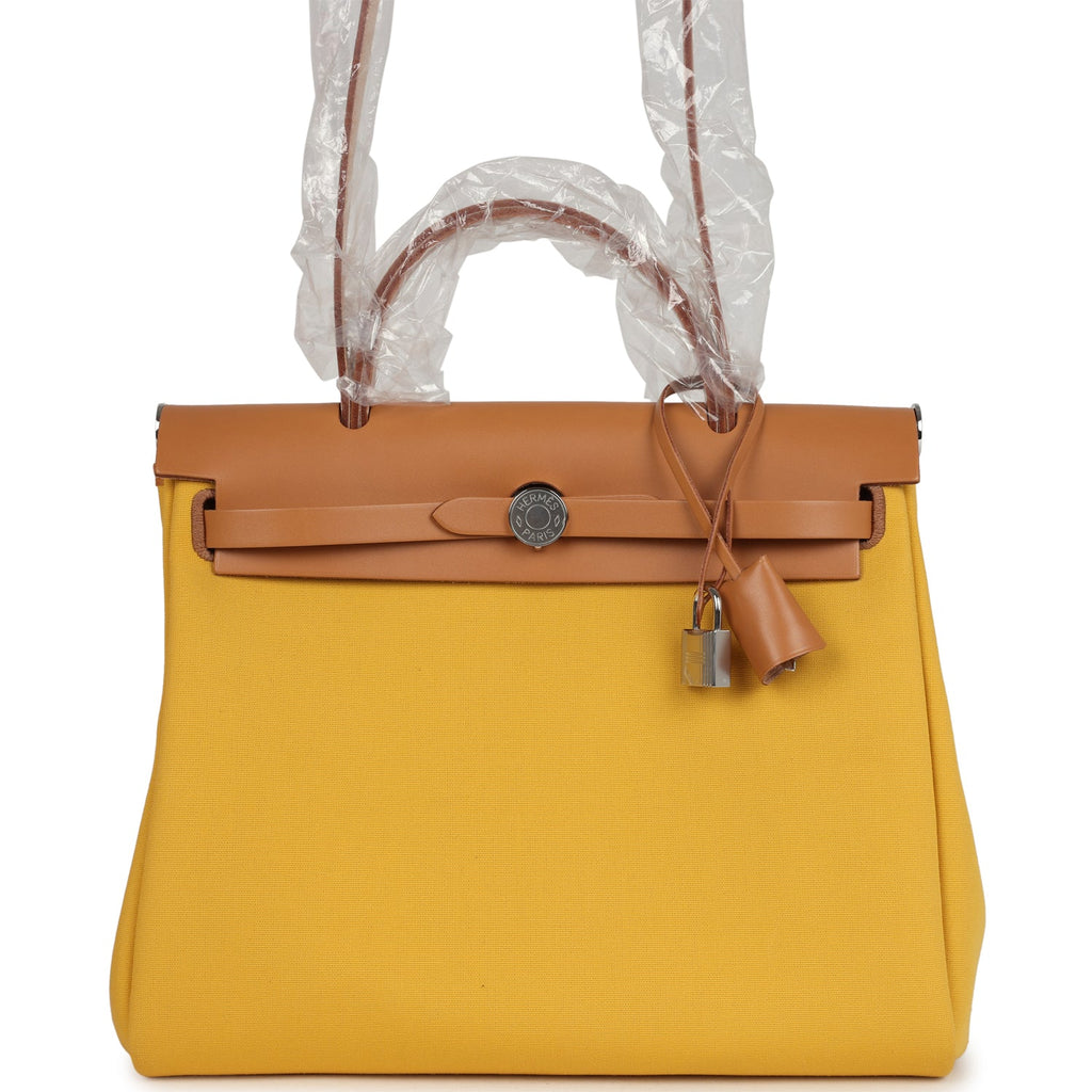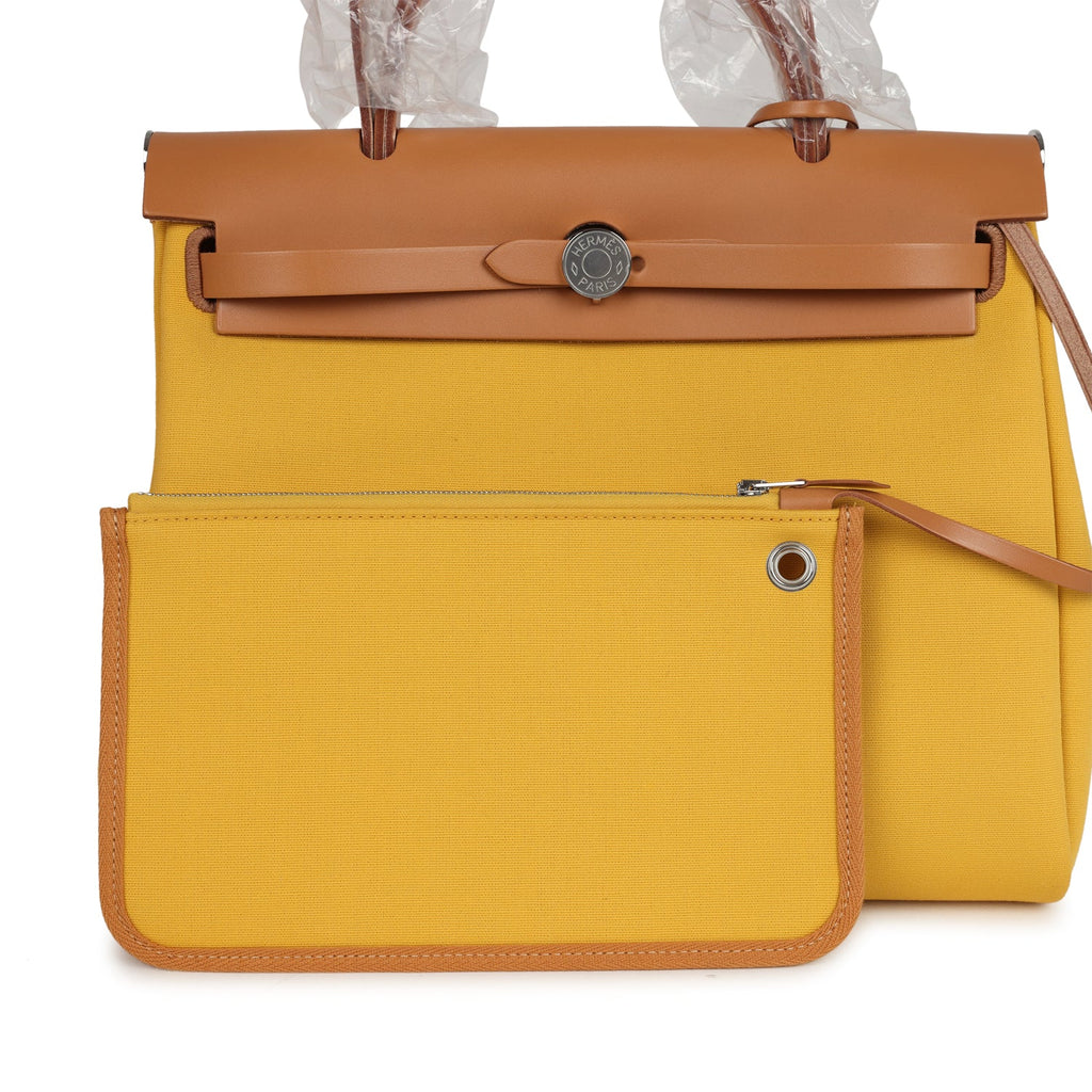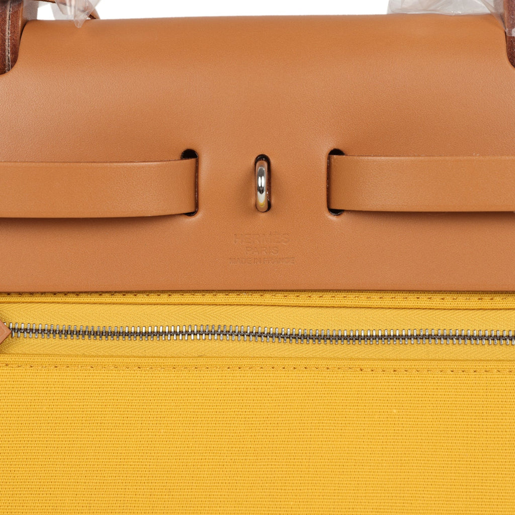 Hermes Herbag Zip 31 PM Soleil Toile H Canvas and Natural Sable Vache Hunter Palladium Hardware