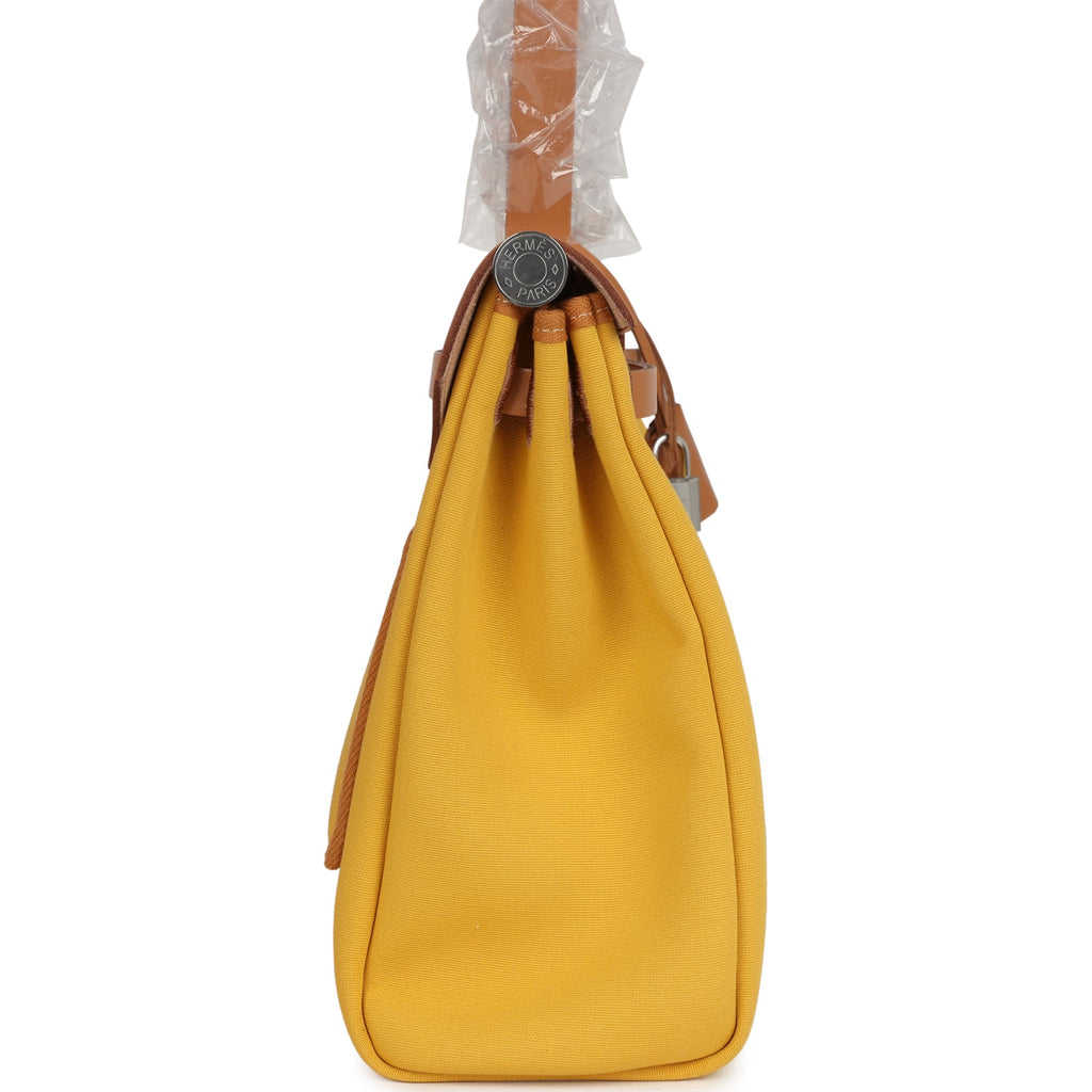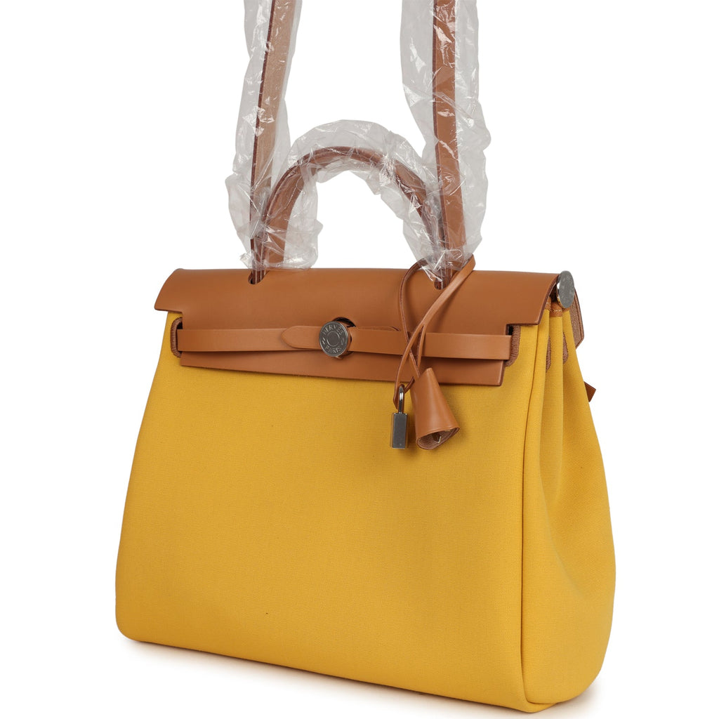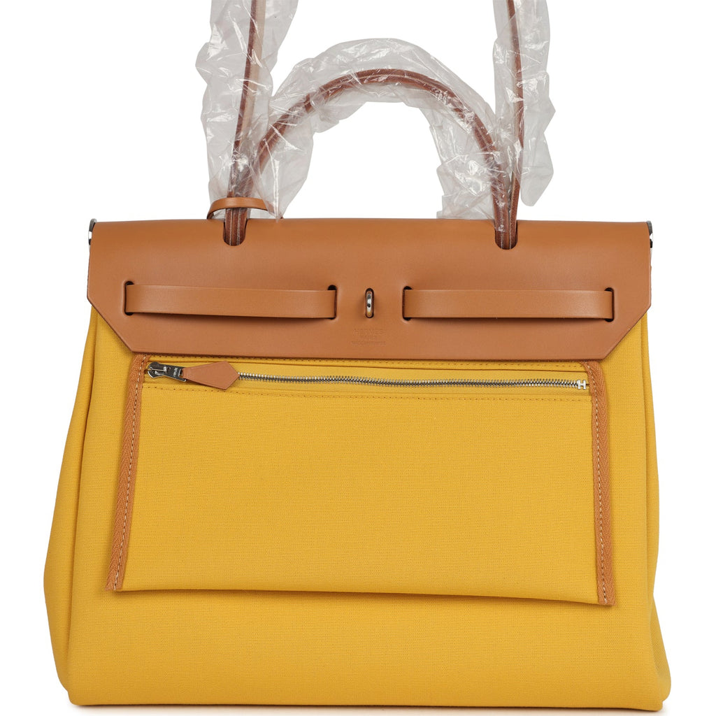 Hermes Herbag Zip 31 PM Soleil Toile H Canvas and Natural Sable Vache Hunter Palladium Hardware