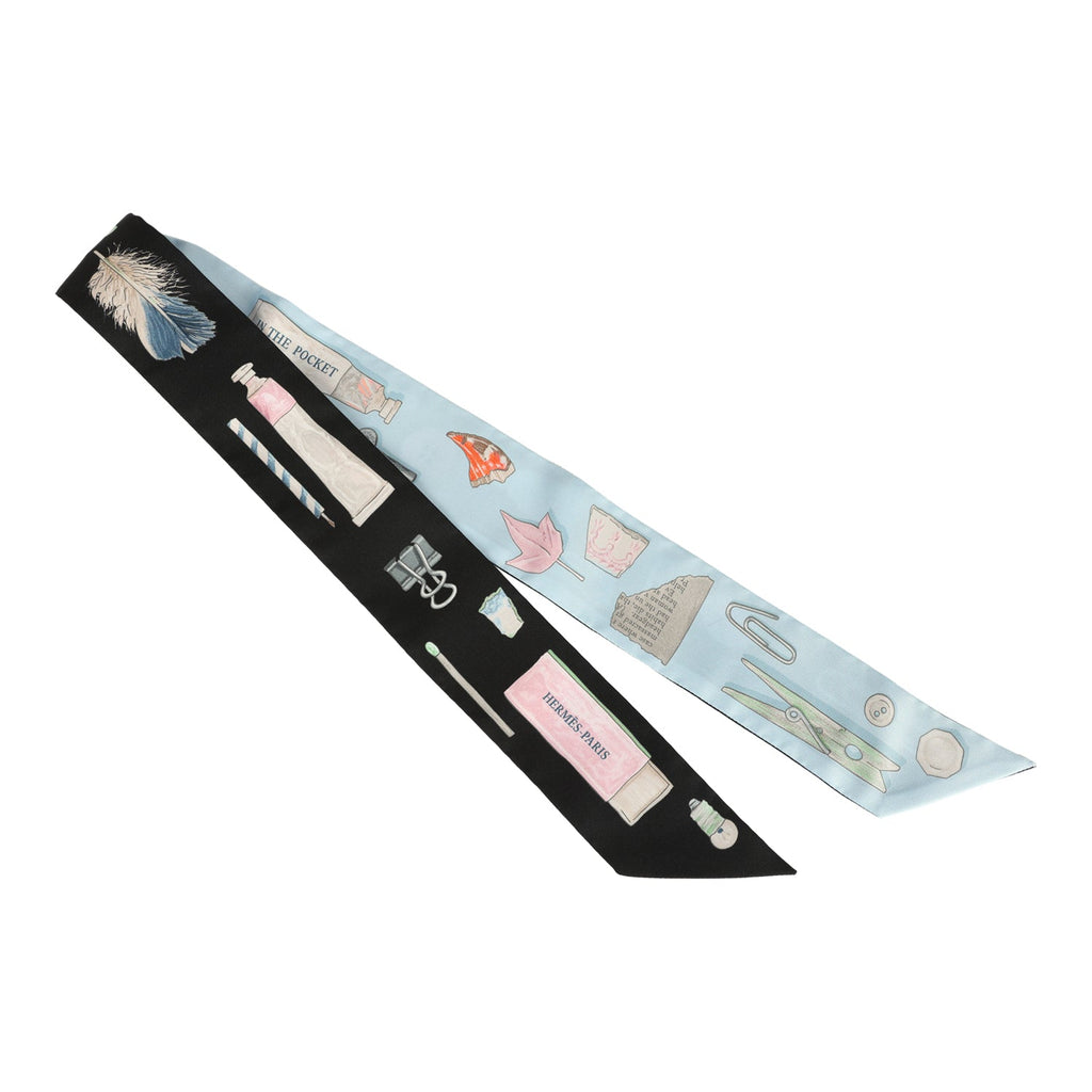 Hermes "In The Pocket" Black and Bleu Multi Silk Twilly