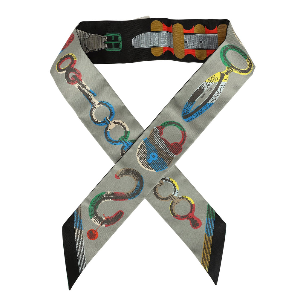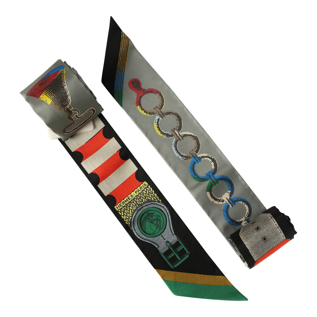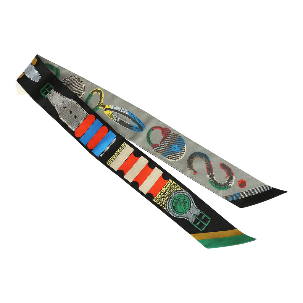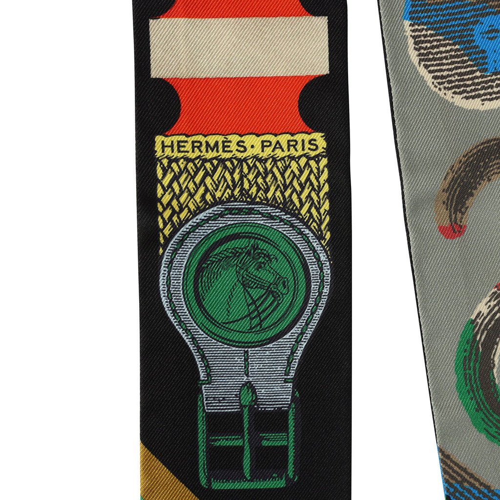 Hermes "Inventaire Poetique De Brides A Bloc" Black, Vert, Rouge Multi Silk Twilly Pair
