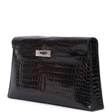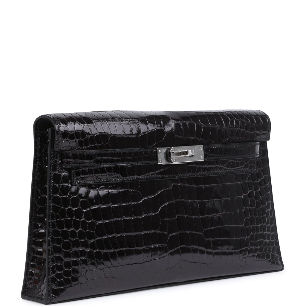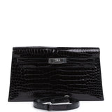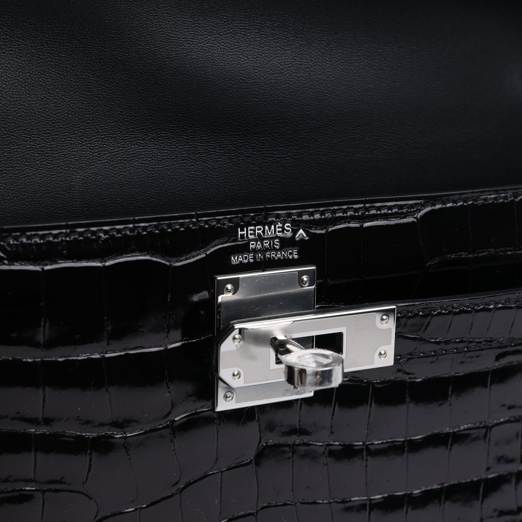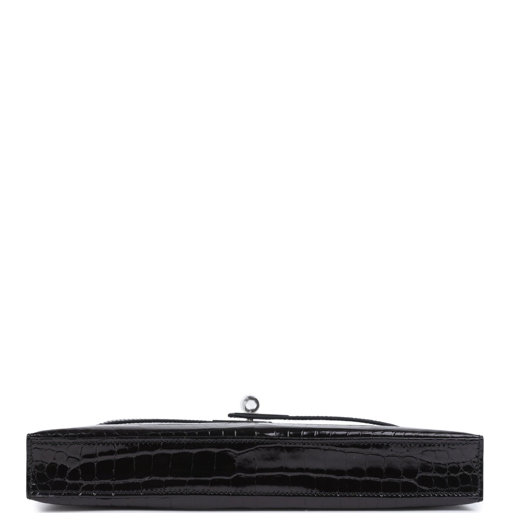 Hermes Kelly Elan Black Shiny Porosus Crocodile Palladium Hardware