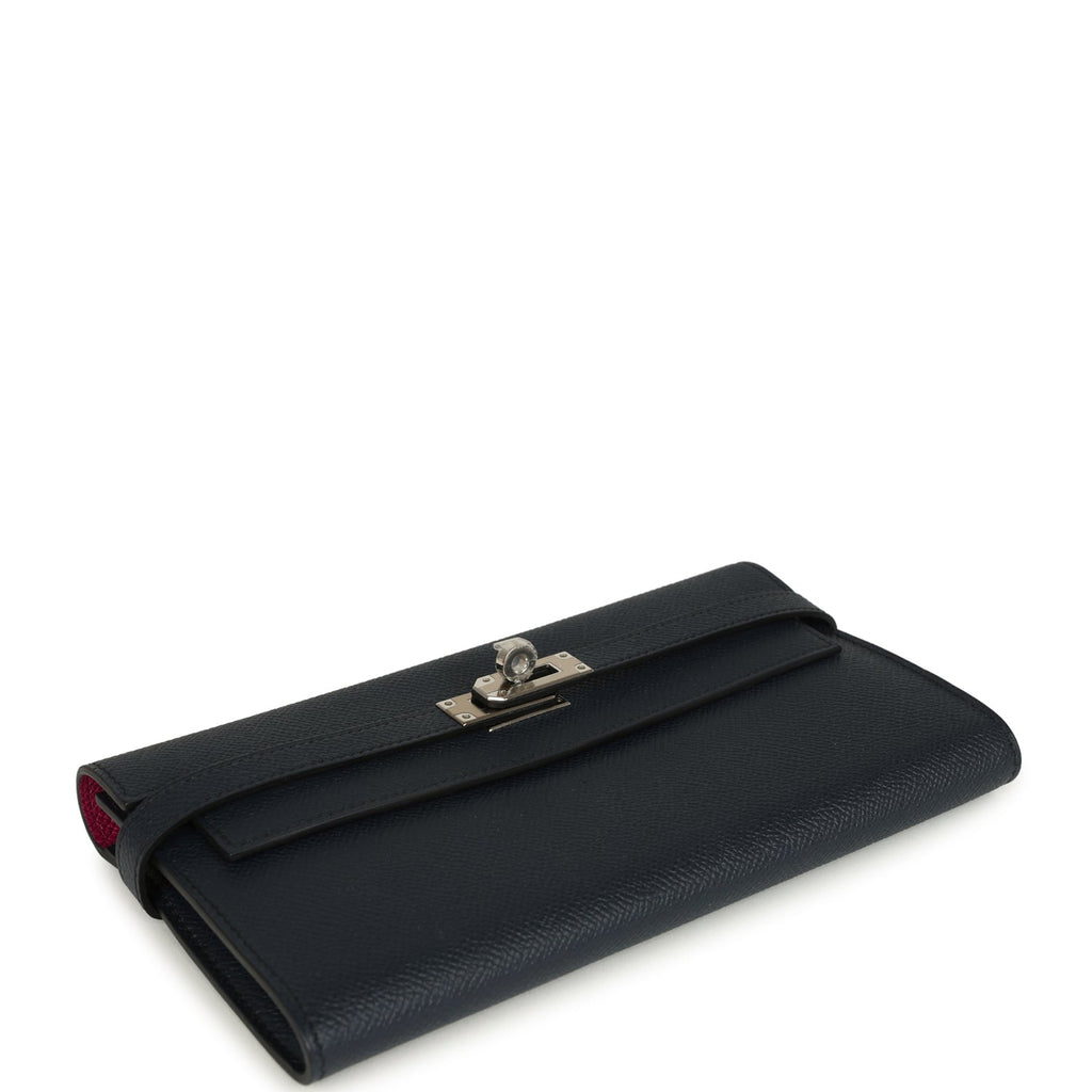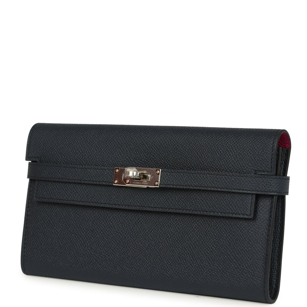 Hermes Kelly Long Wallet Bleu Indigo Verso Epsom Palladium Hardware